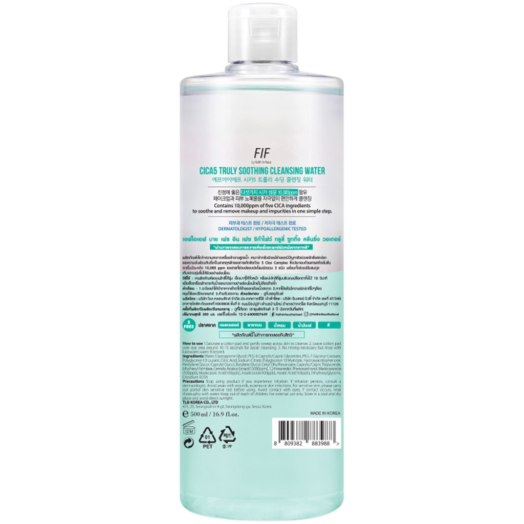 FAITH IN FACE - Cica5 Truly Soothing Cleansing Water (500 ml.) คลีนซิ่ง