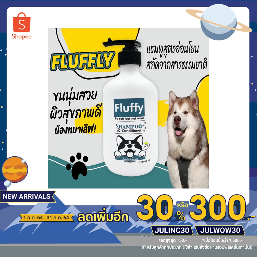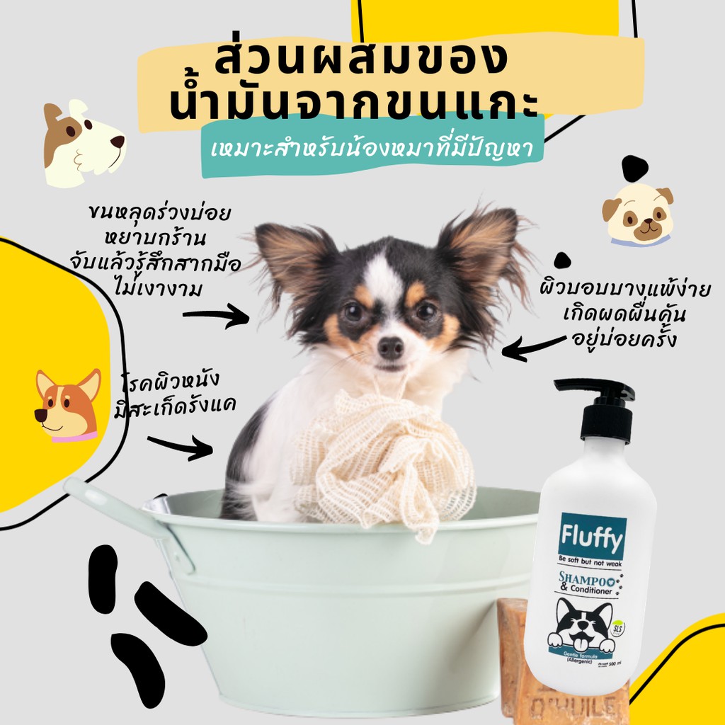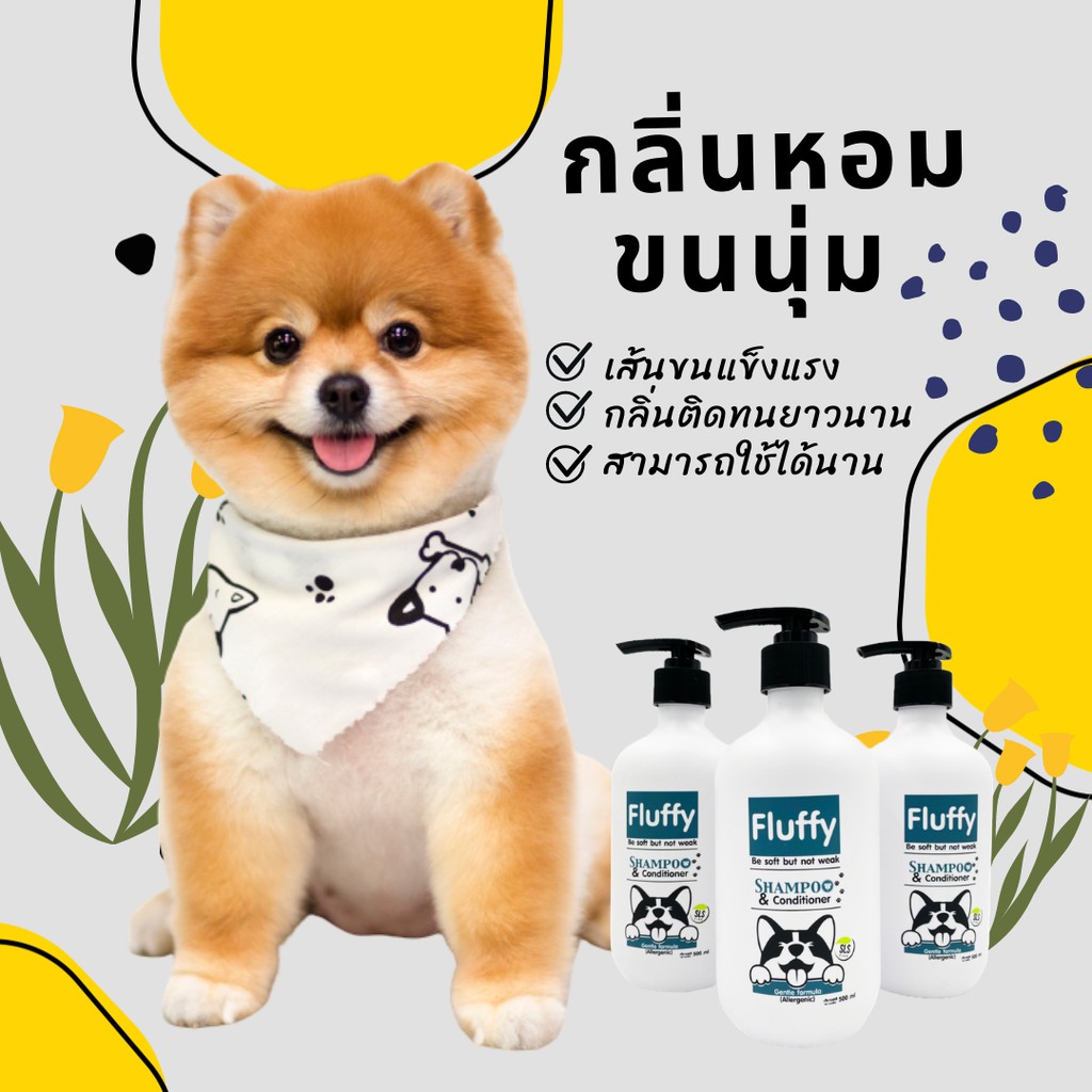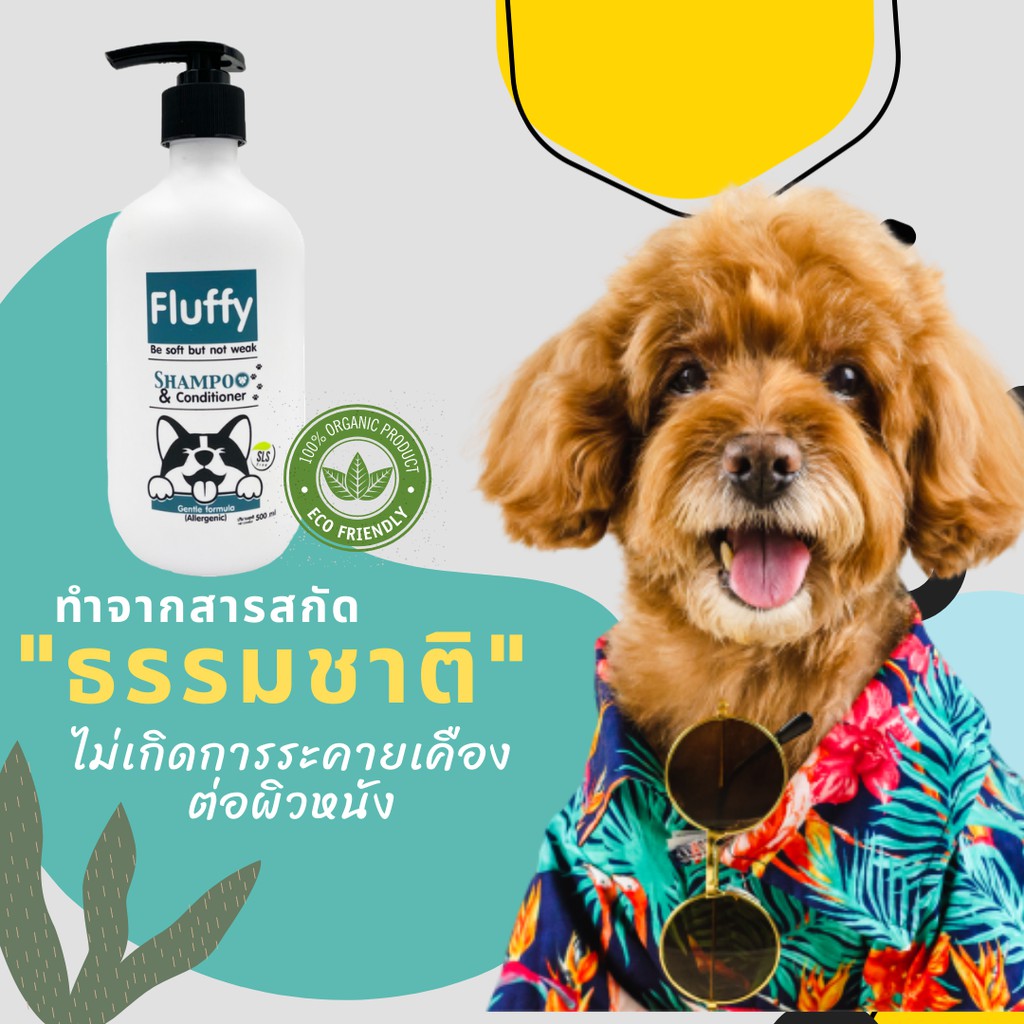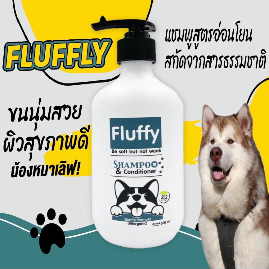 Fluffy แชมพูสุนัข แชมพูน้องหมา แชมพูแมว สูตรอ่อนโยนเหมาะกับสัตว์ที่มีการแพ้ง่าย ปริมาณ 500 ml.