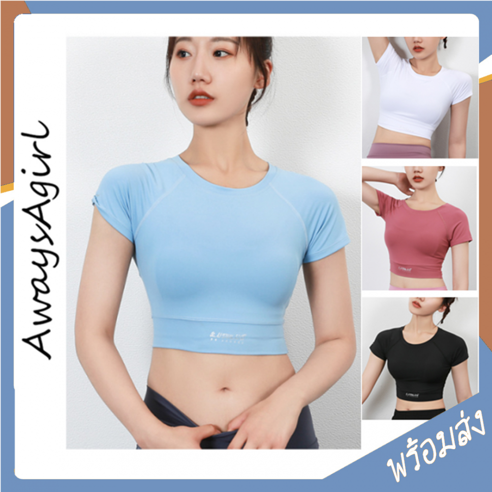 AlwaysAgirl พร้อมส่ง เสื้อออกกำลังกายผู้หญิง เสื้อโยคะ แขนสั้น ทรงครอป เข้ารูป ชุดออกกำลังกายแฟชั่น มีหลายสี COD SSU82