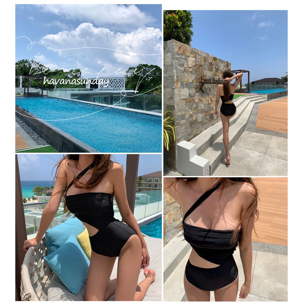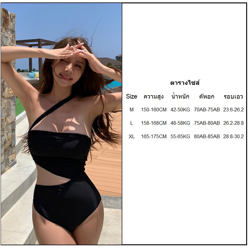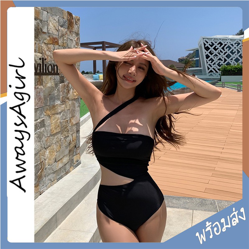 AlwaysAgirl พร้อมส่ง ชุดว่ายน้ำ วันพีช สายคาด เกาะอก โชว์เอว บิกินี่ ชุดว่ายน้ำเซ็กซี่ Sexy Swimsuit สีดำ COD SSU0036