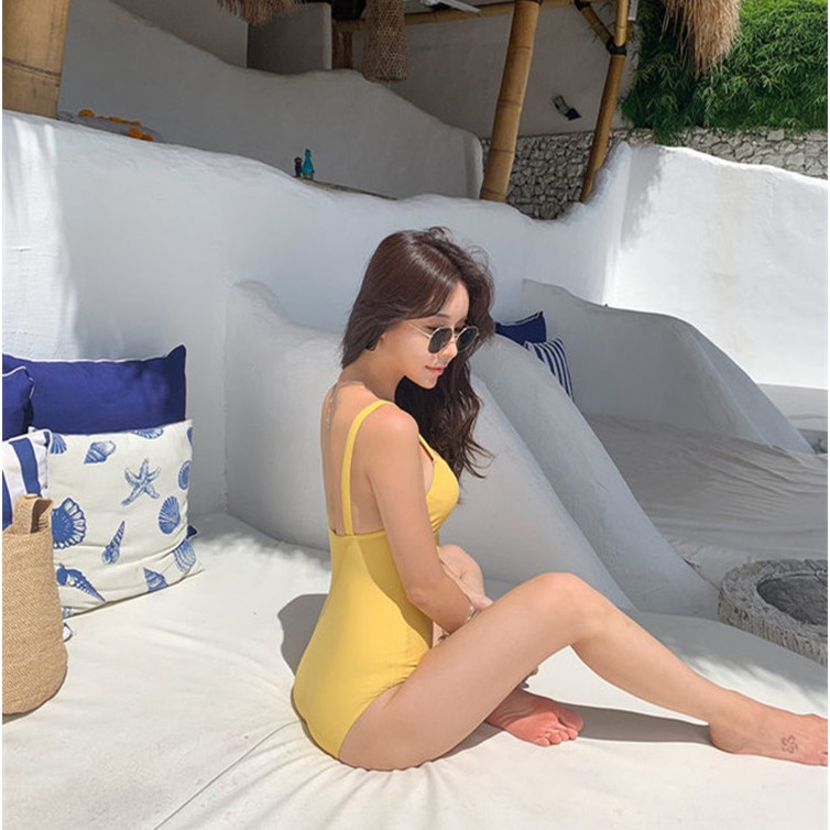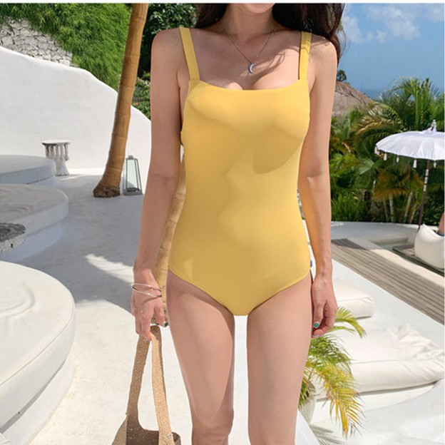 AlwaysAgirl ชุดว่ายน้ำ วันพีช สายเดี่ยว ชุดว่ายน้ำแฟชั่นเกาหลี มีฟองน้ำ มีหลายสี เหลือง ม่วง เทา พร้อมส่ง COD SSU45