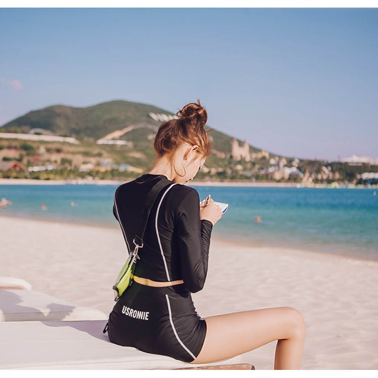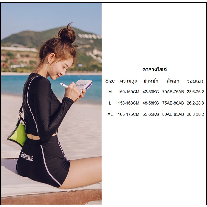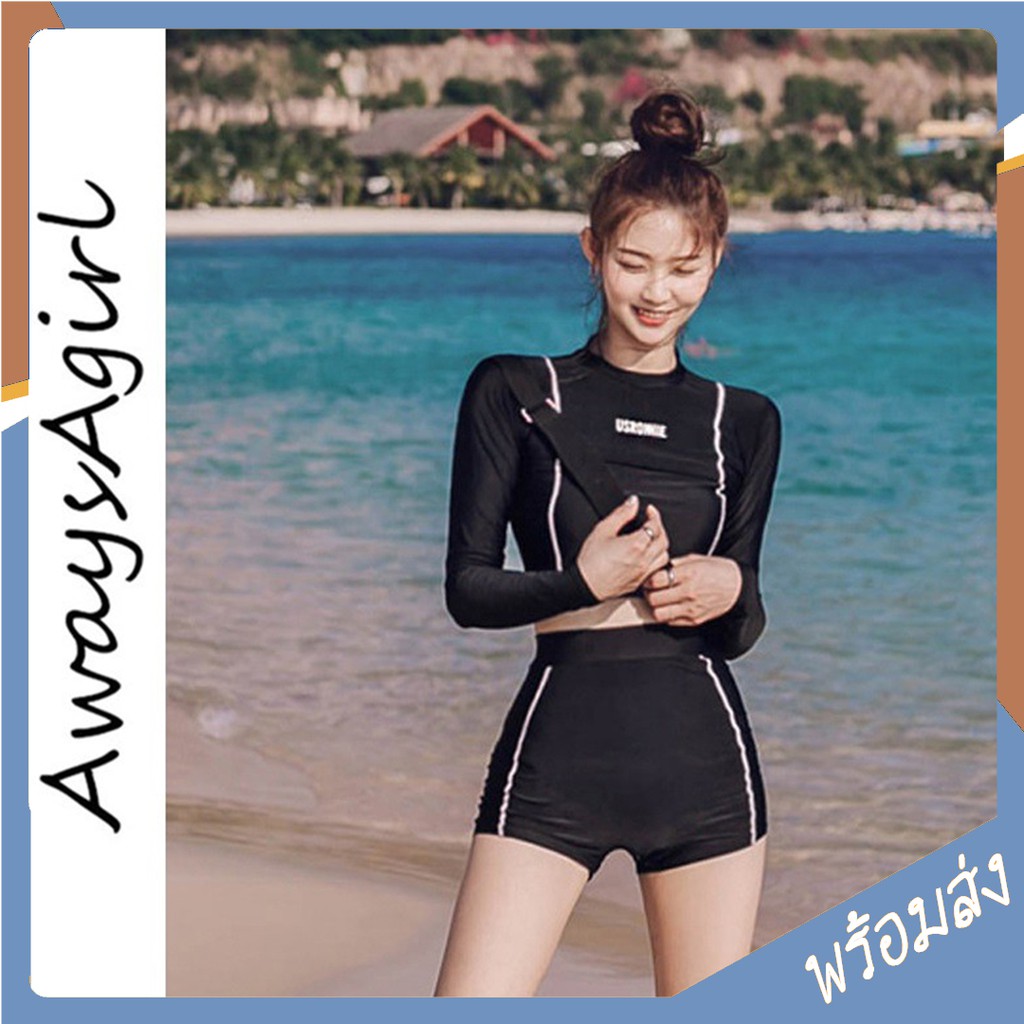 AlwaysAgirl ชุดว่ายน้ำทูพีช กางเกงขาสั้น แขนยาว ชุดว่ายน้ำเกาหลีน่ารัก สีดำ มีฟองน้ำซับใน ใส่สบาย - COD SS119C