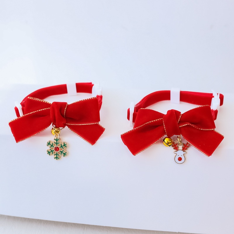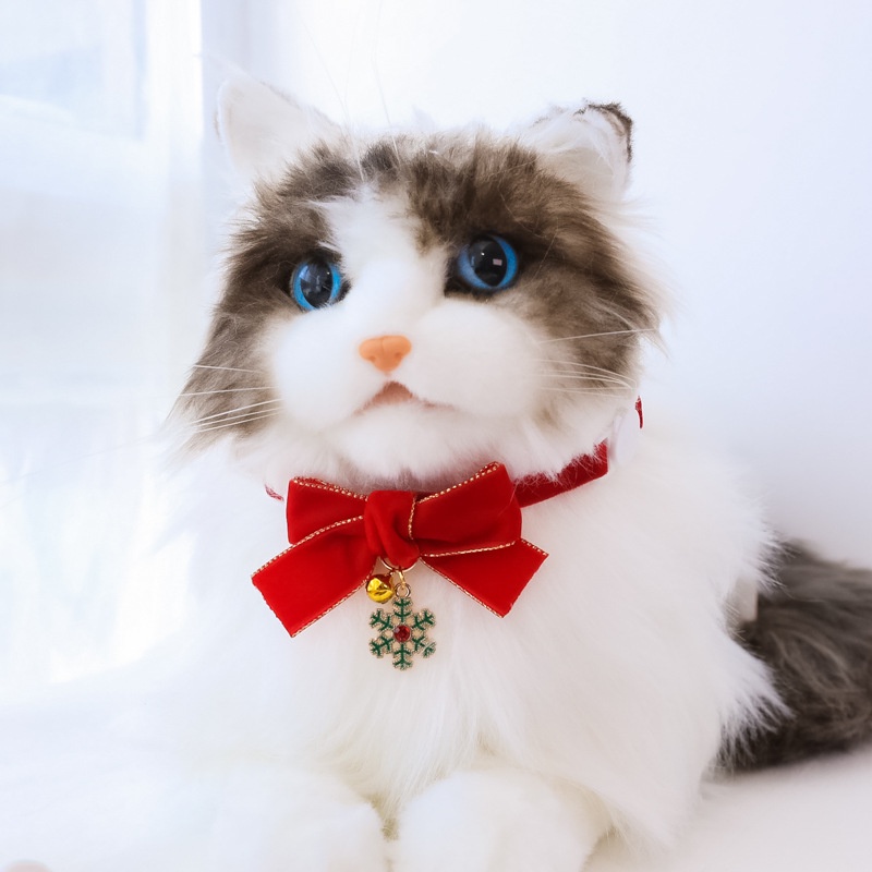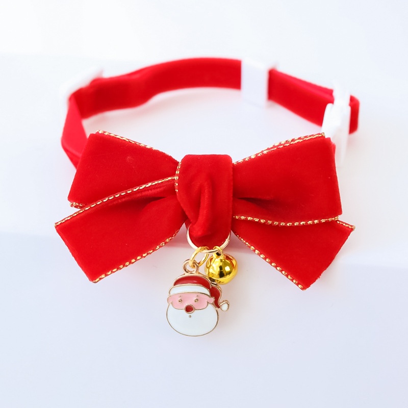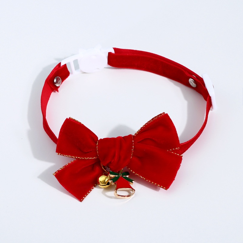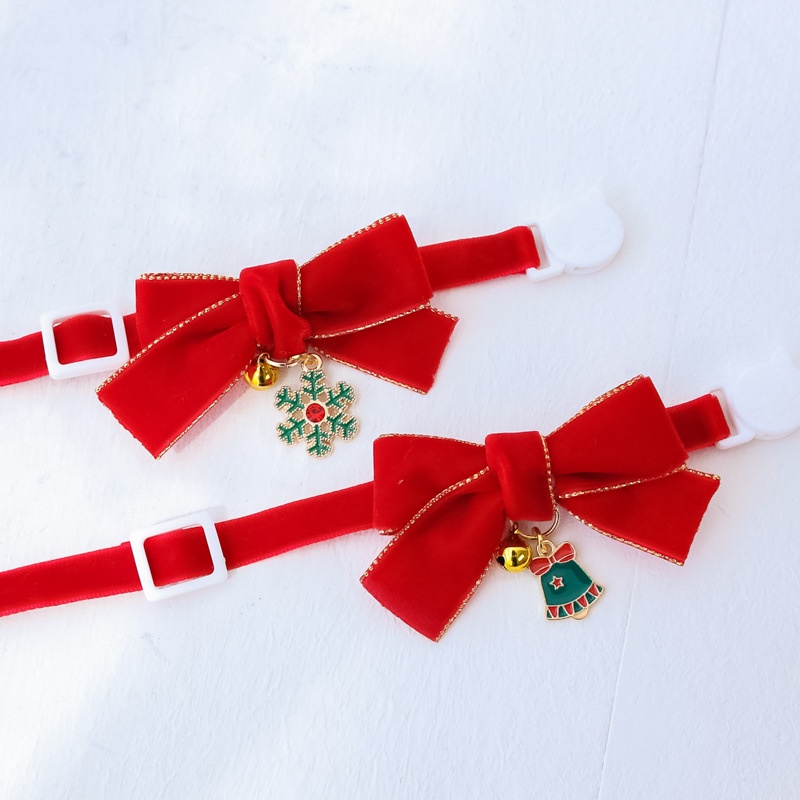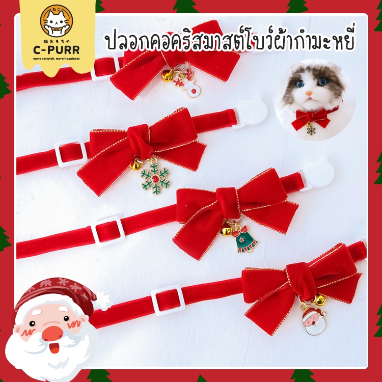 [ปลอกคอนิรภัย] ปลอกคอแมว ปลอกคอคริสมาสต์โบว์ผ้ากำมะหยี่และกระพรวน