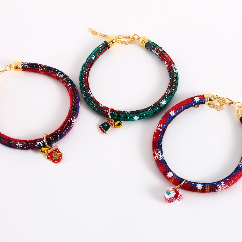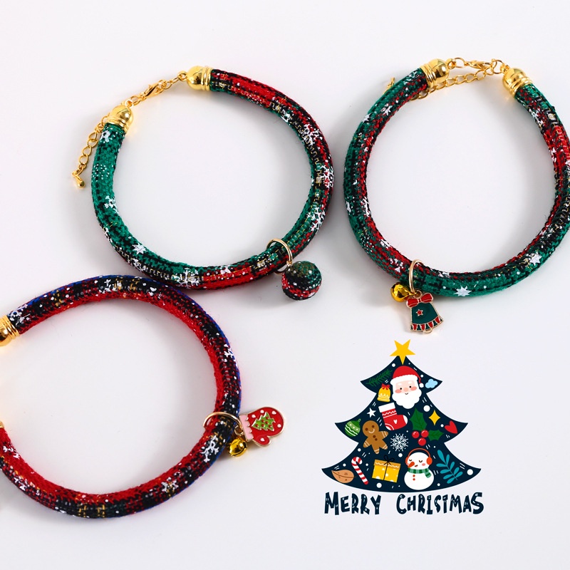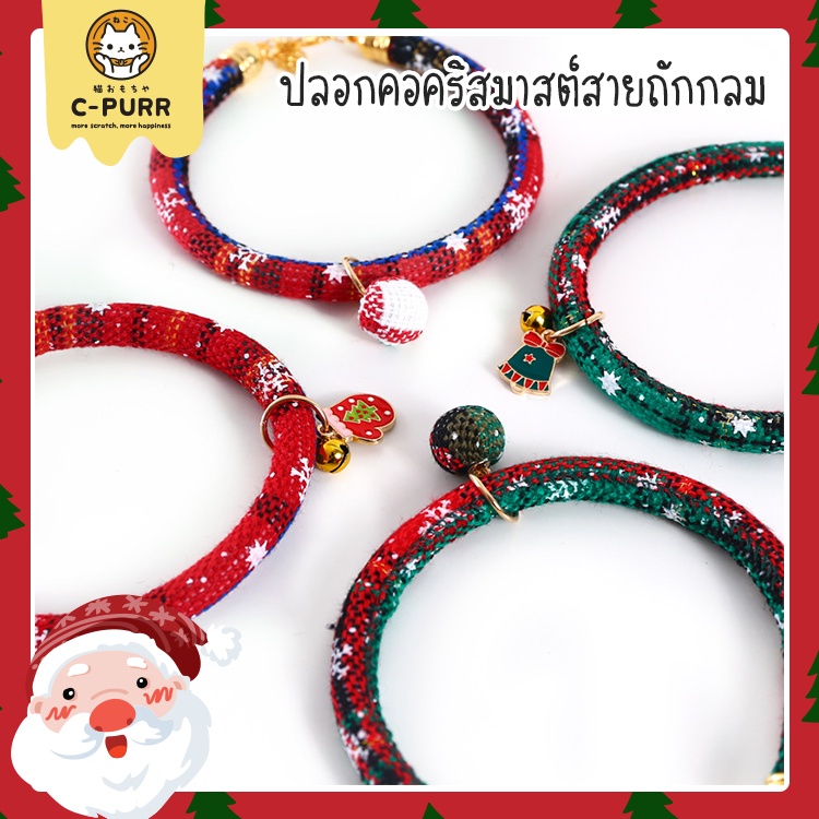 ปลอกคอแมว ปลอกคอสุนัข ปลอกคอคริสมาสต์สายถักกลมและกระพรวน