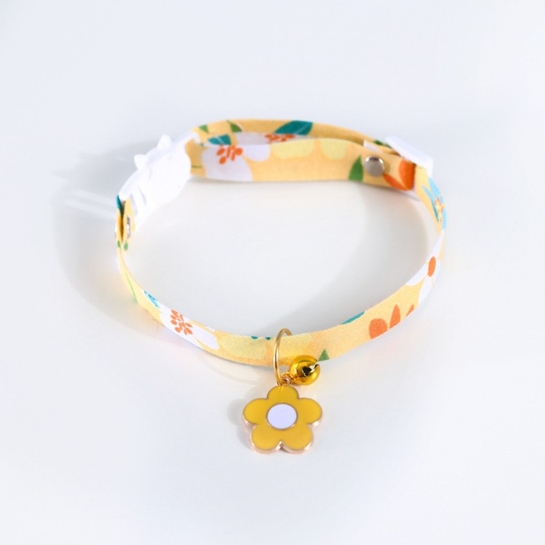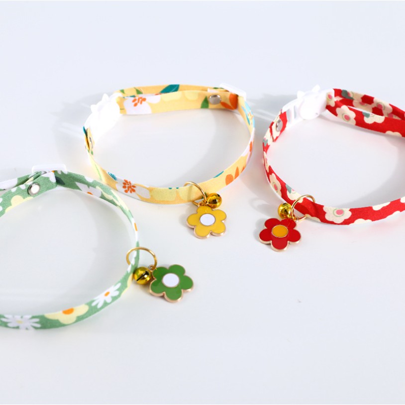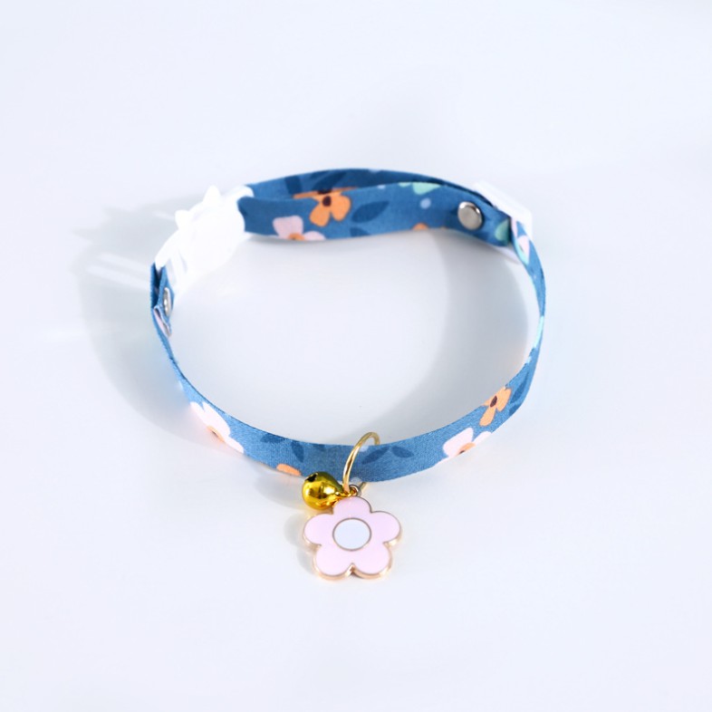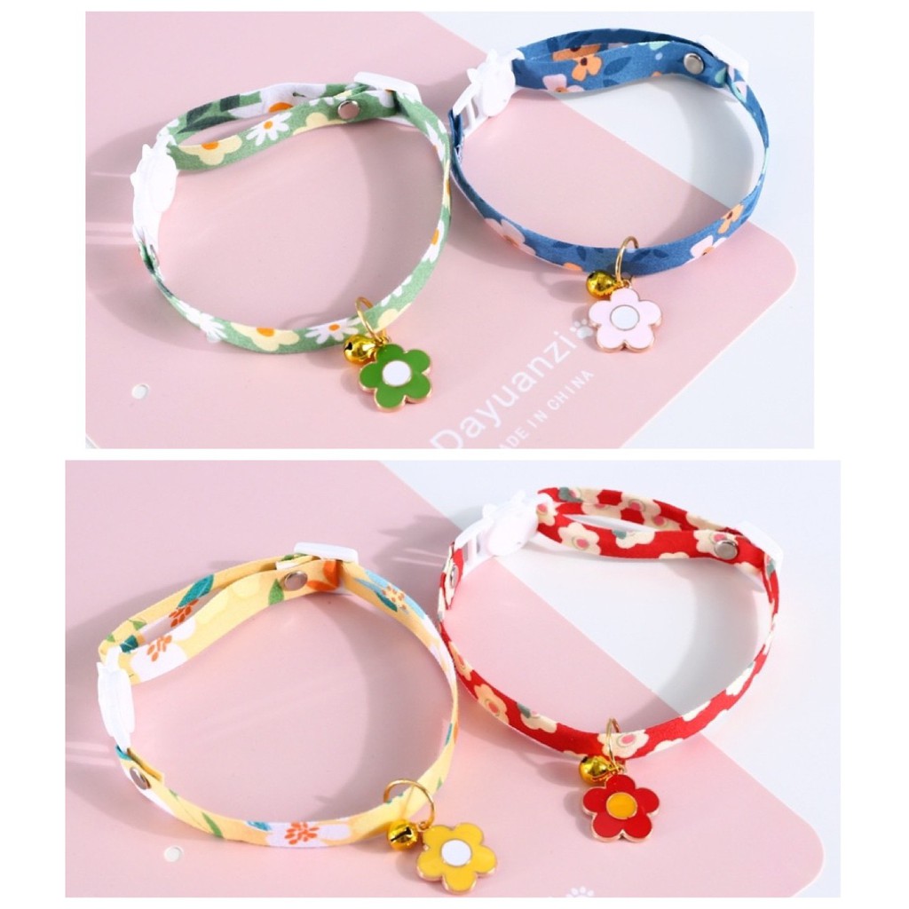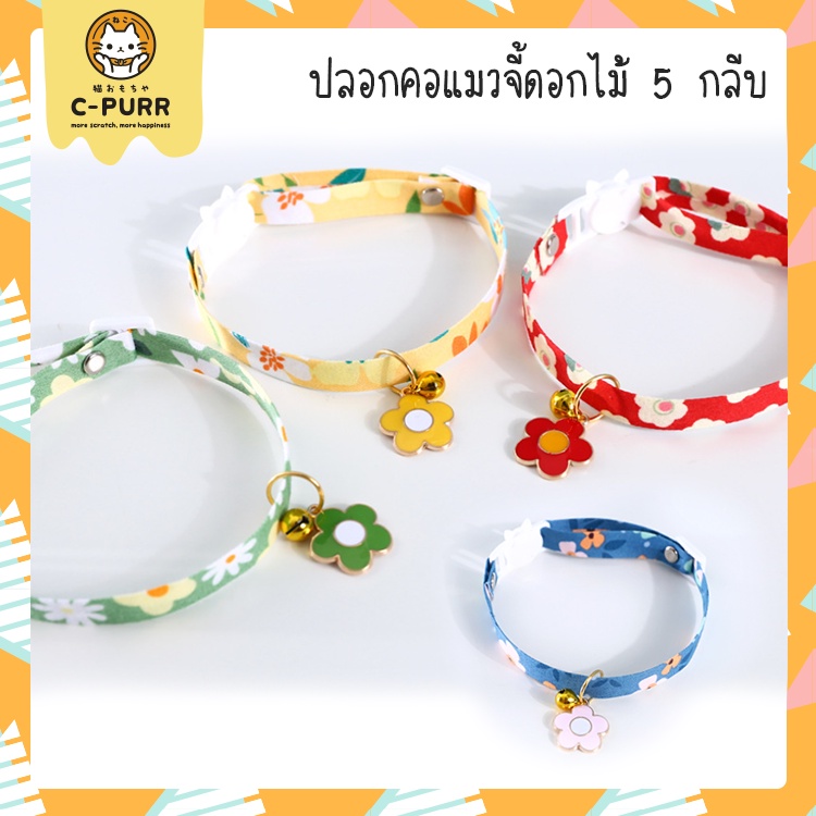 [ปลอกคอนิรภัย] ปลอกคอแมว สายลายดอกไม้สีสันสดใส จี้ดอกไม้ 5 กลีบและกระดิ่ง