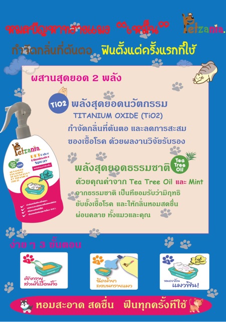 Petzania สเปรย์ดับกลิ่นทรายแมว สเปรย์หอมกำจัดกลิ่นทรายแมว สเปรย์กำจัดกลิ่นอเนกประสงค์ 250 ml.