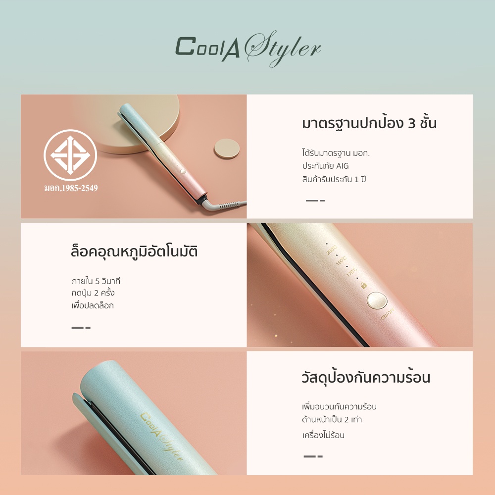 Coolastyler ใหม่2024 High-end series เครื่องหนีบผม 2IN1 เครื่องม้วนผม ไอออนลบปกป้องเส้นผม มอก. ประกัน1ปี