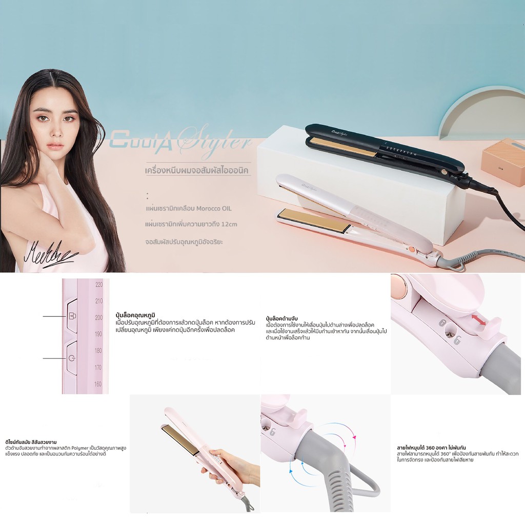 Coolastylerเครื่องหนีบผม หน้าจอสัมผัส ทำความ ร้อนได้เร็ว ประจุไอออนลบ จัดแต่งผมได้ทั้งแบบลอนและแบบตรง