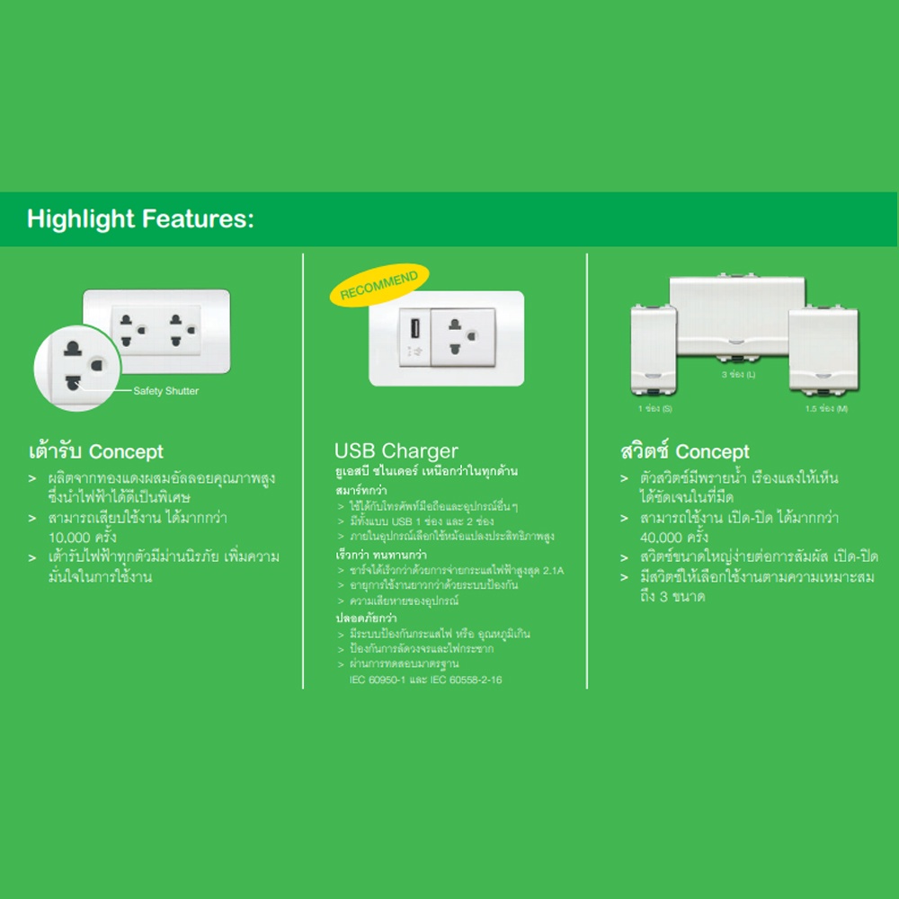 Schneider Electric ชุดเต้ารับคู่ 3 ขา 16 แอมป์ 250 โวลต์ มีม่านนิรภัย พร้อมฝาครอบ ขนาด 2 ช่อง สีขาว รุ่น Concept
