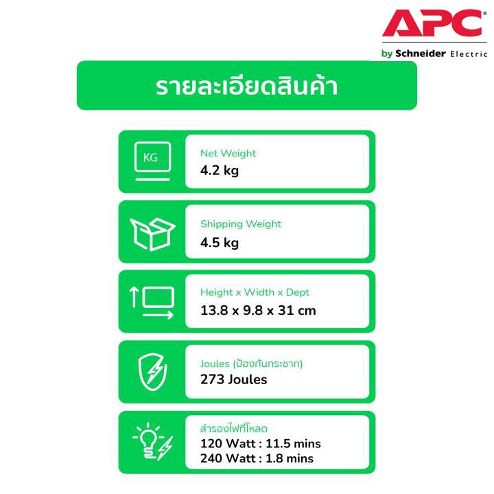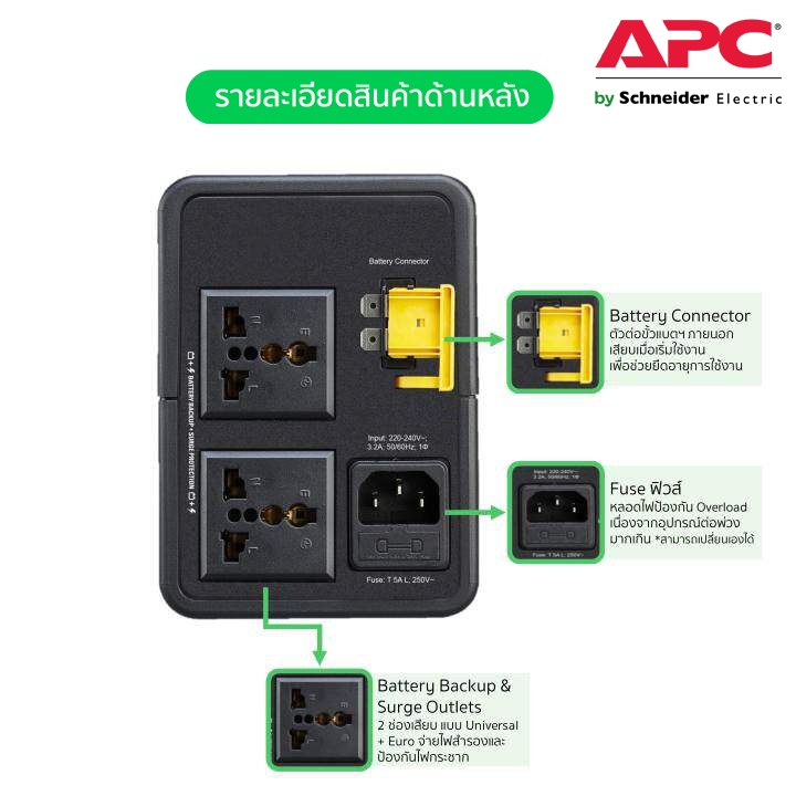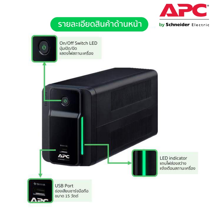 APC เครื่องสำรองไฟ (700VA/360WATT) AVR, 2 UNIVERSAL OUTLET มี USB รหัส BVX700LUI-MS รุ่น Easy UPS