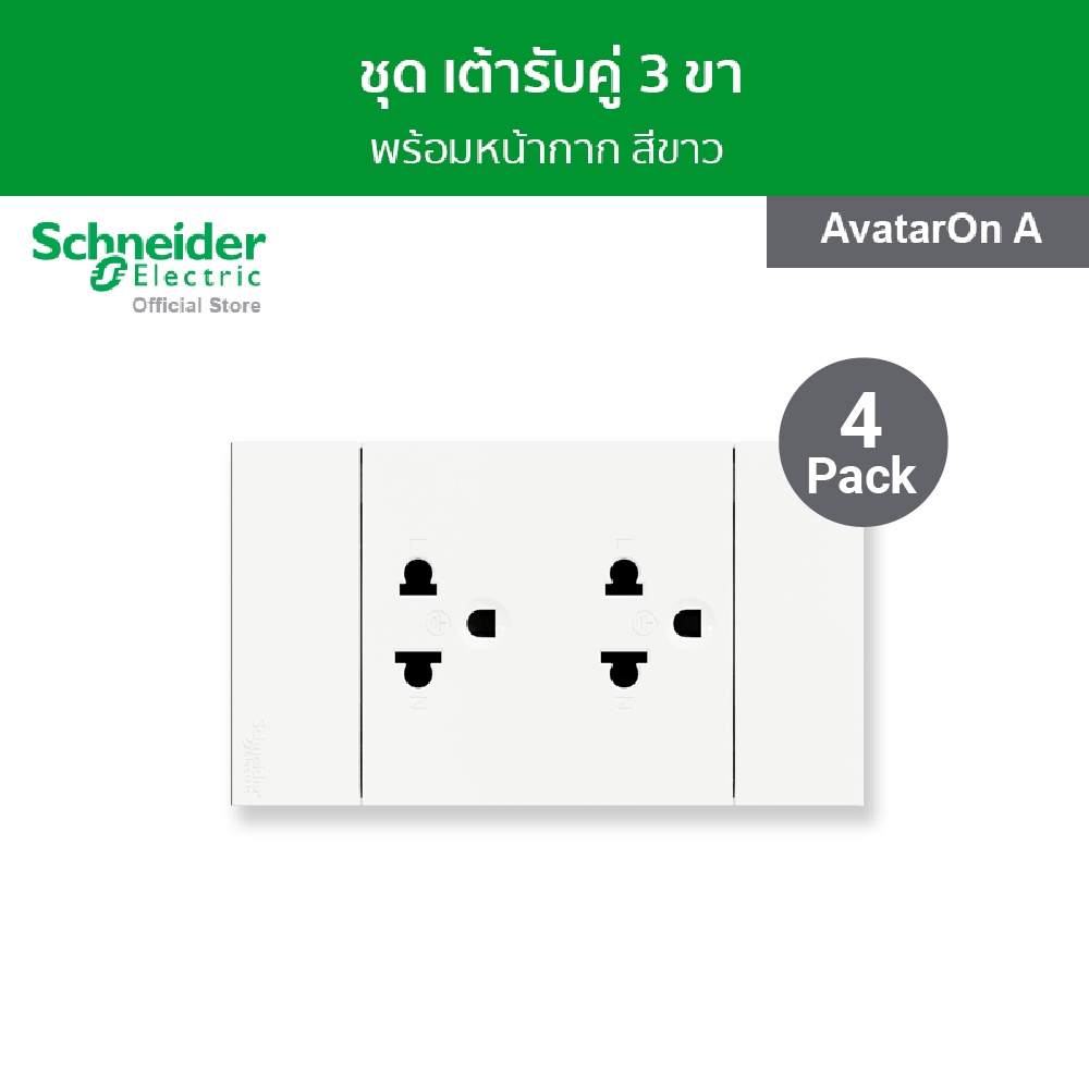 Schneider Electric Socket-outlet,Avataron A,Universal,16A,250V,2G,3 Pin (A70426UST_WE(4P)ชุดเต้ารับคู่3ขา พร้อมฝาครอบ