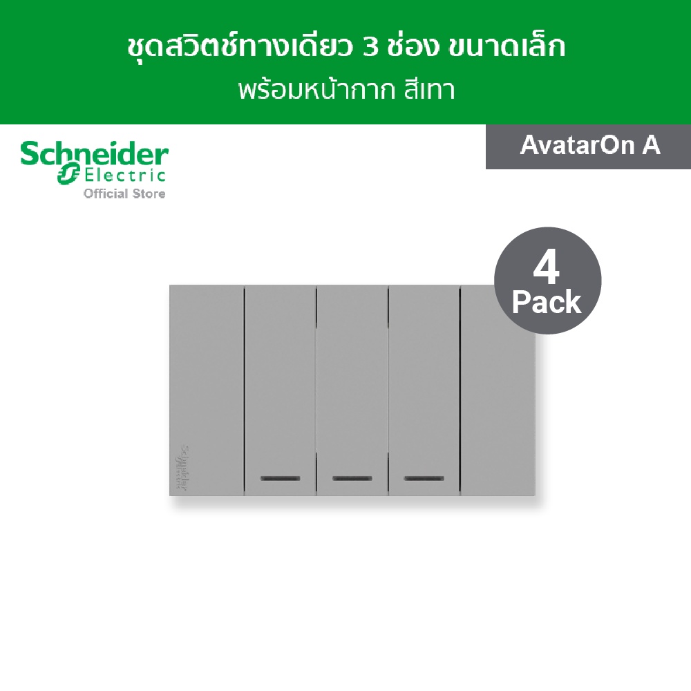 [แพ็ค 4] Schneider Electric ชุดสวิตช์ทางเดียว 3 ช่อง ขนาดเล็ก สีเทา รหัส A7033F_GY รุ่น AvatarOn A