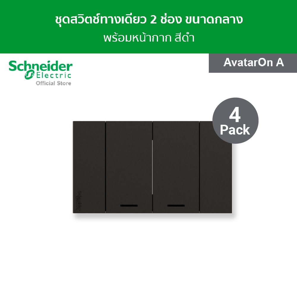 [แพ็ค 4] Schneider Electric ชุดสวิตช์ทางเดียว 2 ช่อง ขนาดกลาง พร้อมฝาครอบ สีดำ รหัส A7032F_BK รุ่น AvatarOn A