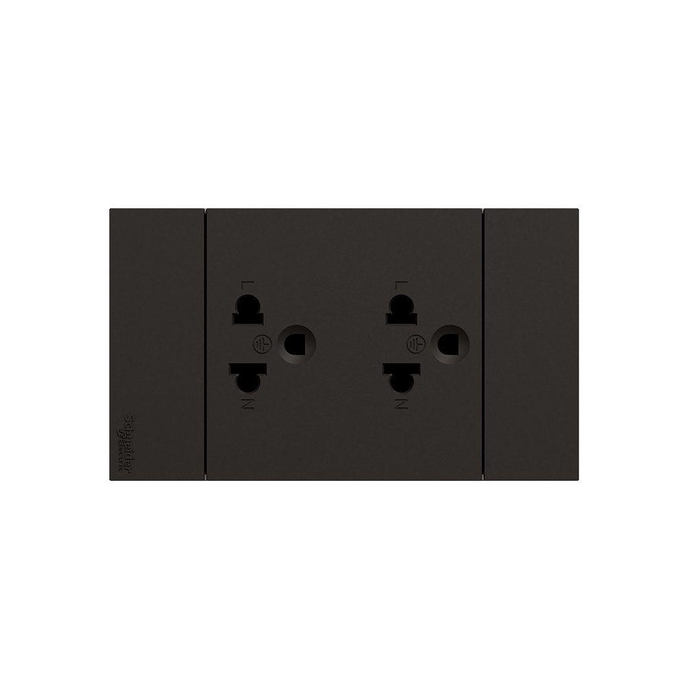 [แพ็ค 4] Schneider Electric ชุดเต้ารับคู่ 3 ขา พร้อมฝาครอบ ขนาด 3 ช่อง สีดำ รหัสA70426UST_BK รุ่น AvatarOnA