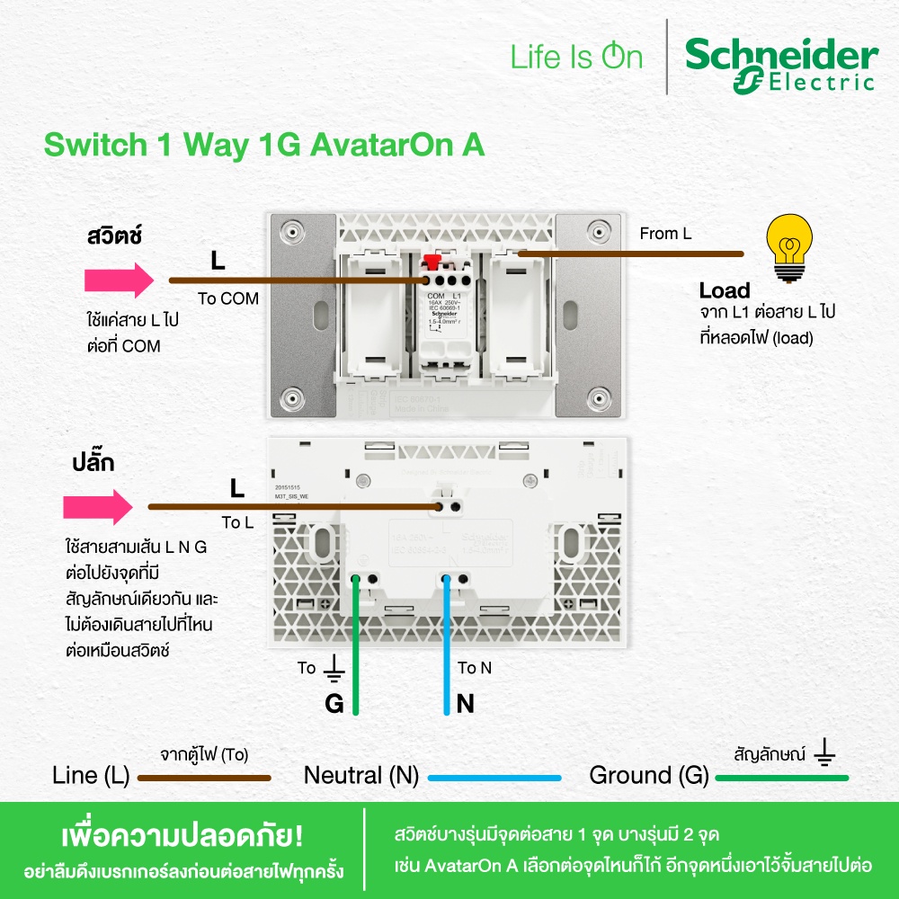 Schneider Electric ชุดสวิตช์ทางเดียว 1 ช่อง ขนาดใหญ่ พร้อมฝาครอบ สีดำ รหัส A7031F_BK รุ่น AvatarOn A