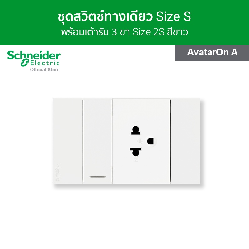 Schneider Electric ชุดสวิตช์ทางเดียว 1 ช่อง + เต้ารับเดี่ยว 3 ขา 1 ตัว พร้อมฝาครอบ สีขาว รุ่น AvatarOn A