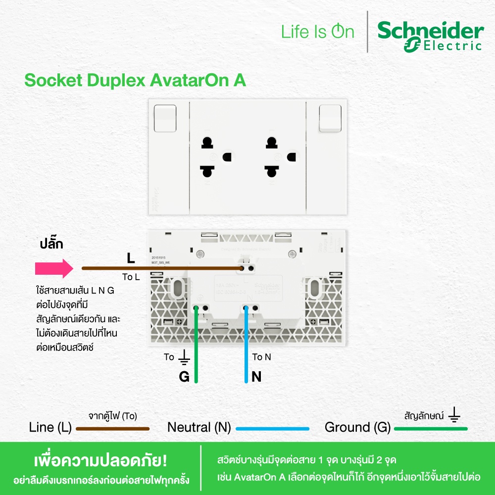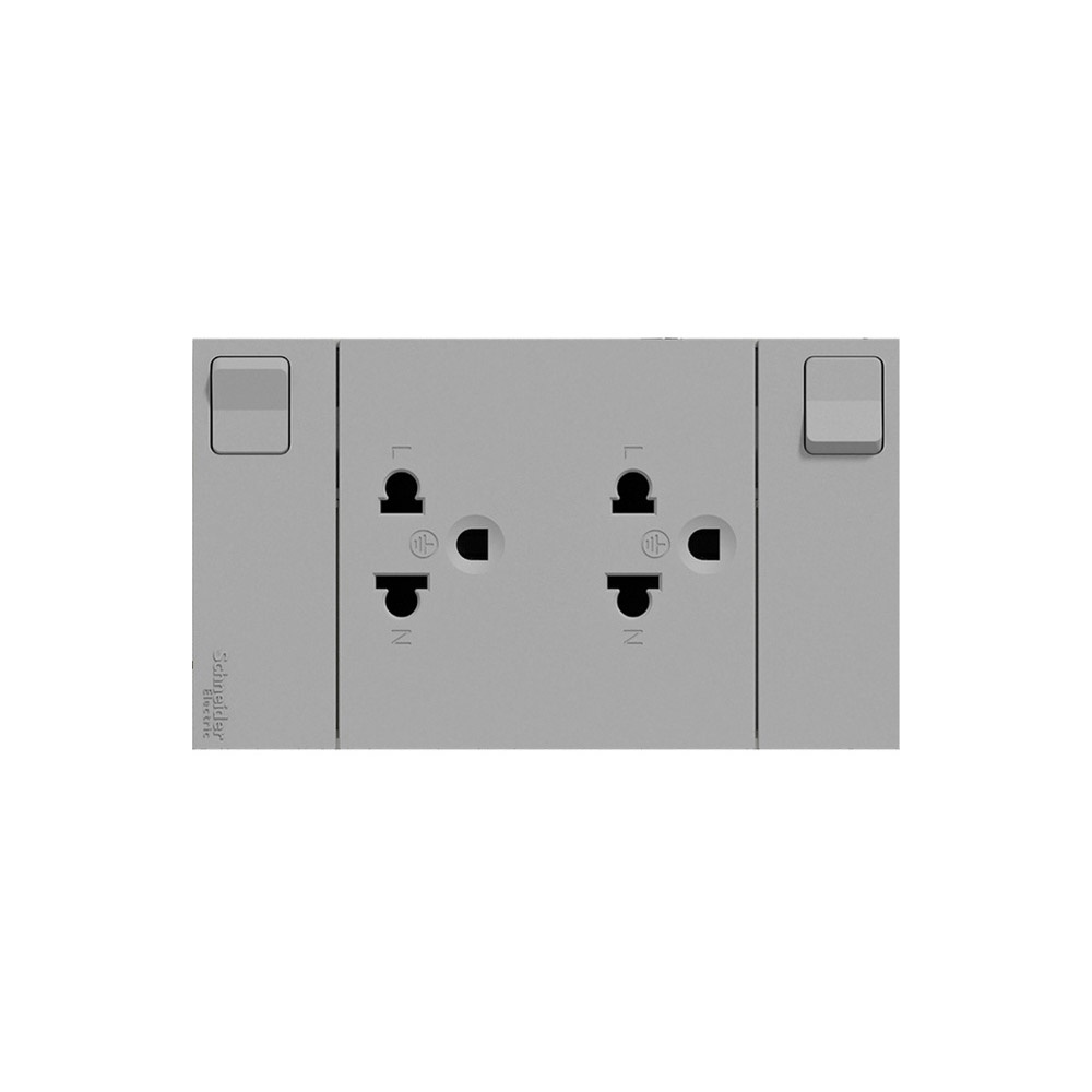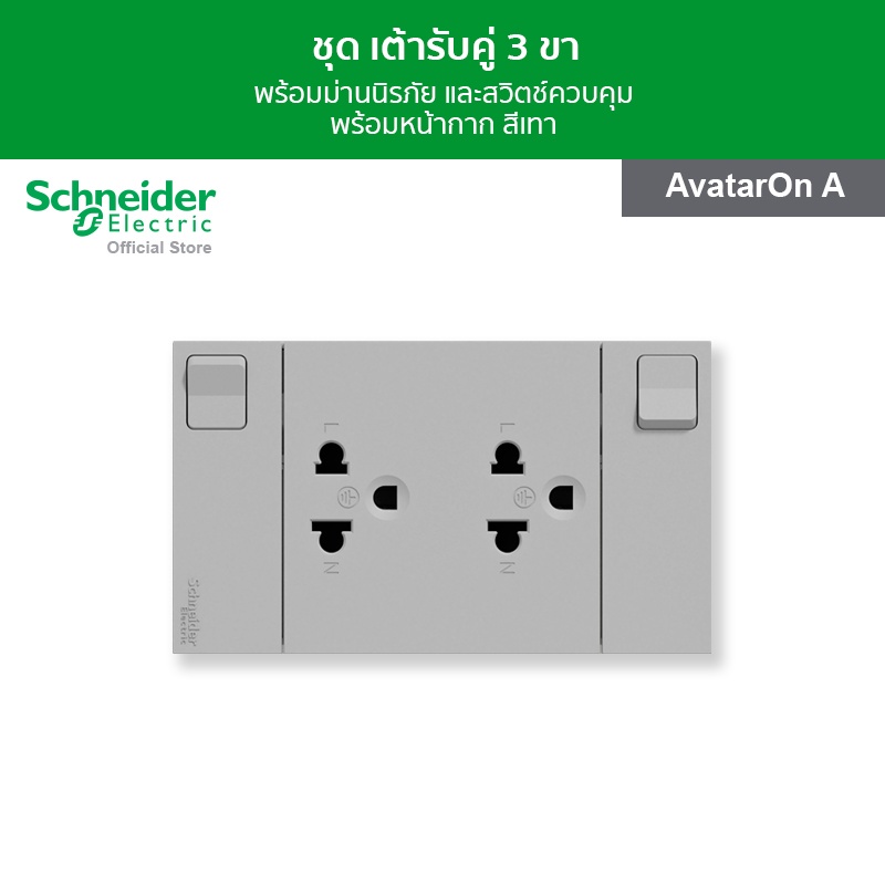 Schneider Electric ชุดเต้ารับคู่ 3 ขา พร้อมม่านนิ รภัยและสวิตช์ควบคุม ขนาด 3 ช่อง สีเทา รหัส M3T_SIS_GY รุ่น AvatarOn A
