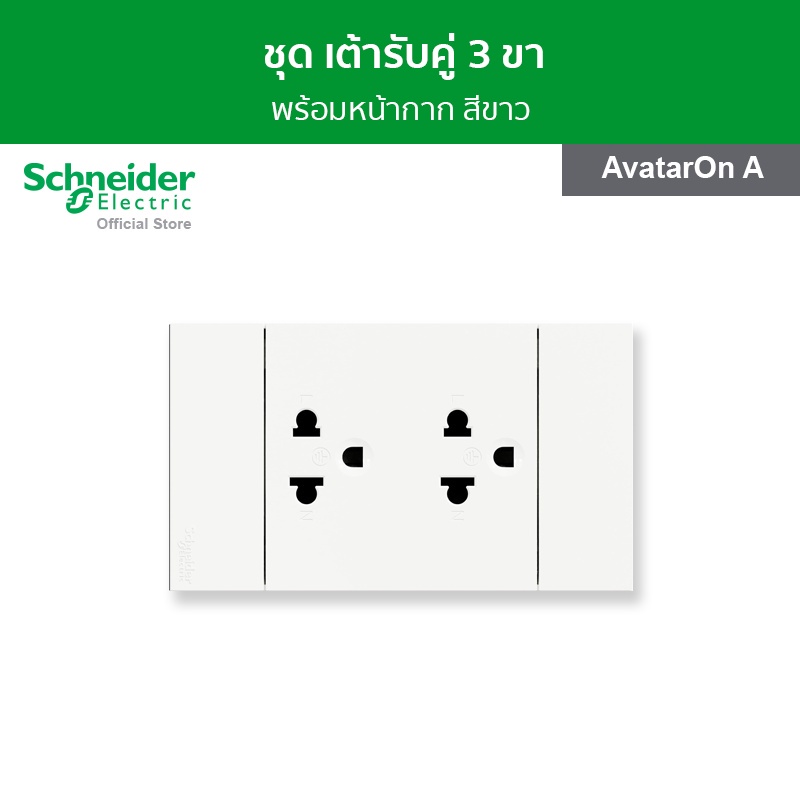 Schneider Electric ชุดเต้ารับคู่ 3 ขา พร้อมหน้ากาก สีขาว A70426UST_WE รุ่น AvatarOn A