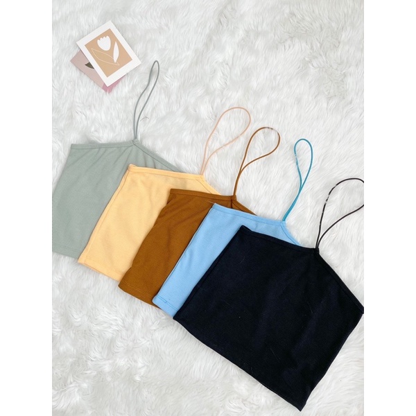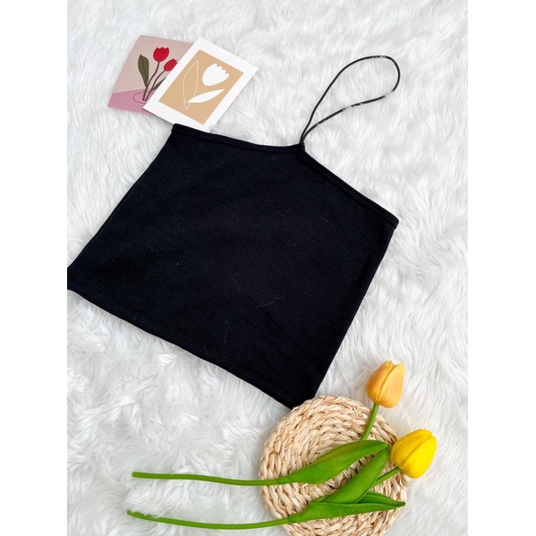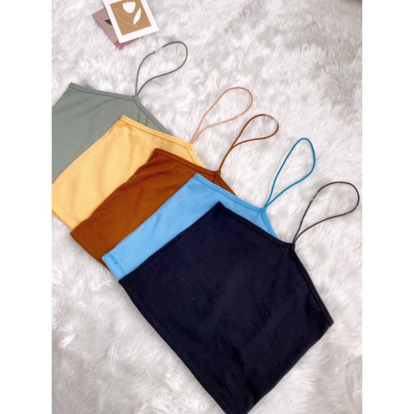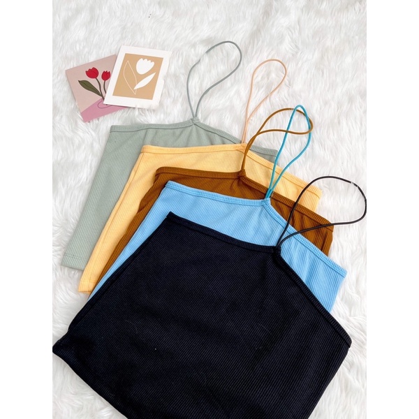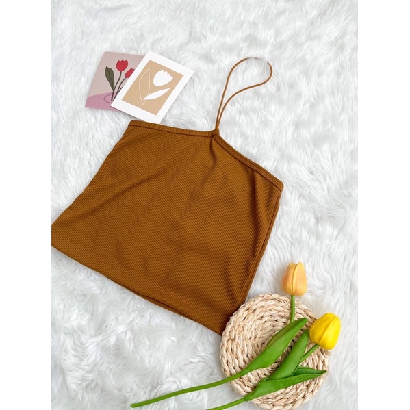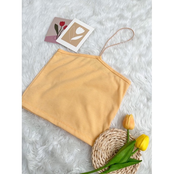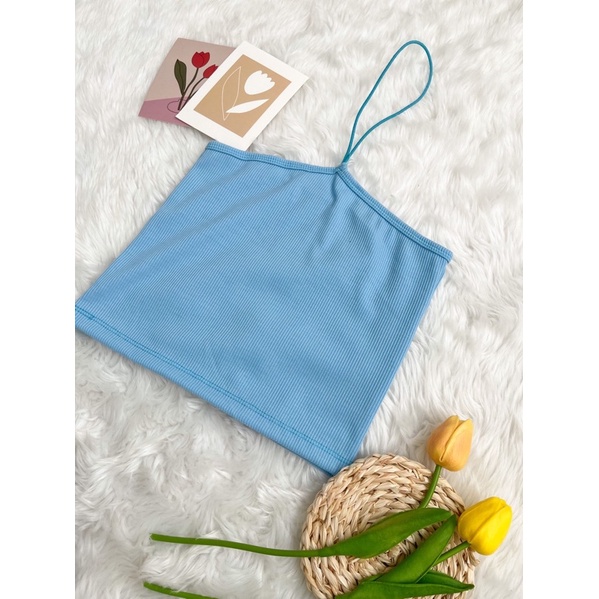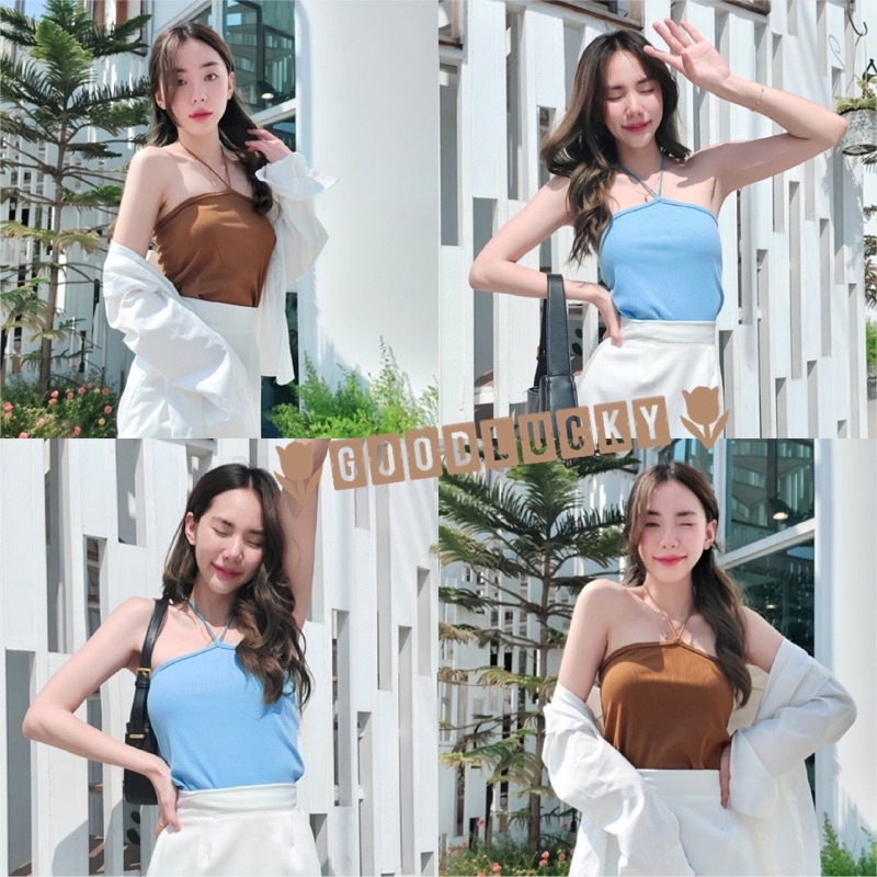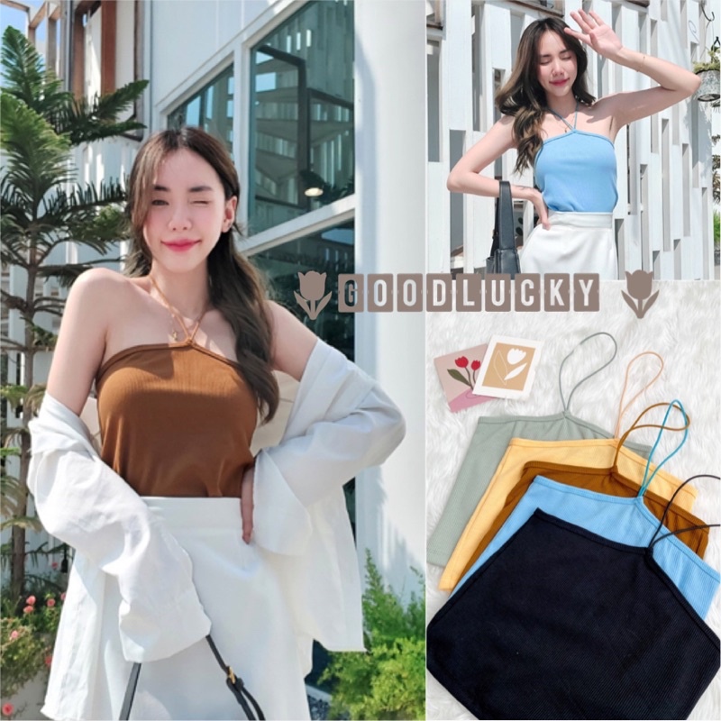 🌷GoodLucky🌷 (208) เสื้อไปทะเล เสื้อครอปคล้องคอ สายคล้องคอสปาเกตตี้ ผ้าเก็บทรงสวยมาก