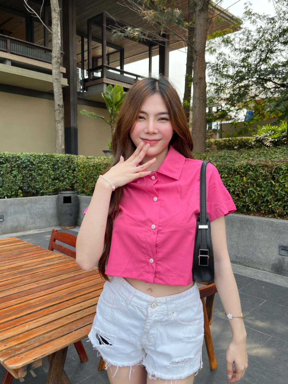 🌷GoodLucky🌷 (51) เสื้อครอปเชิ้ตมีปกผ้าไหมอิตาลี สีสันน่ารักสุดๆ