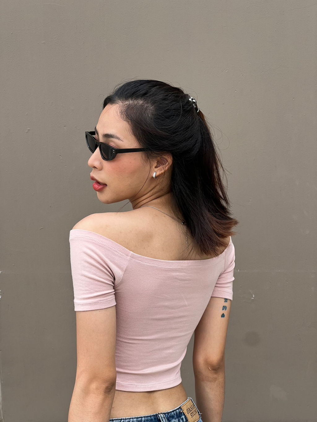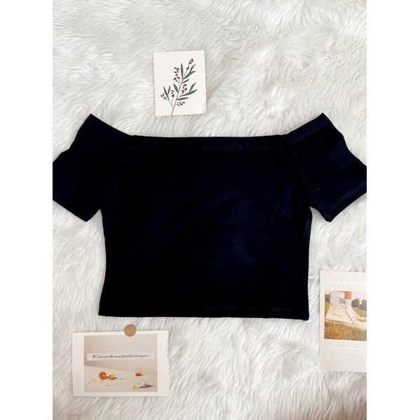 🌷GoodLucky🌷(9) เสื้อครอป เสื้อปาดไหล่ ปาดไหล่แขนสั้น ใส่ไปทะเล ผ้าสเปนเดกซ์ไฮโซ