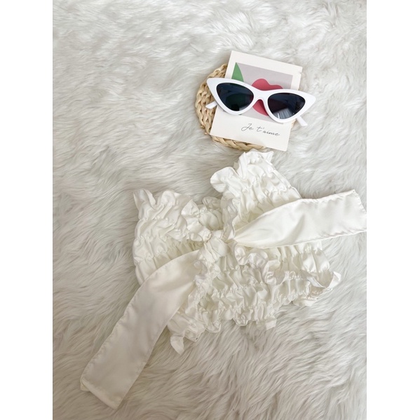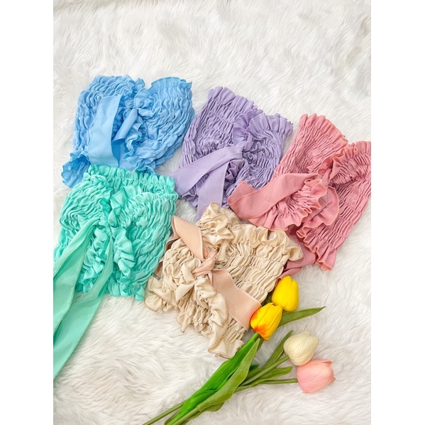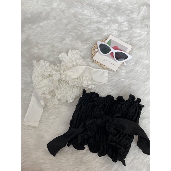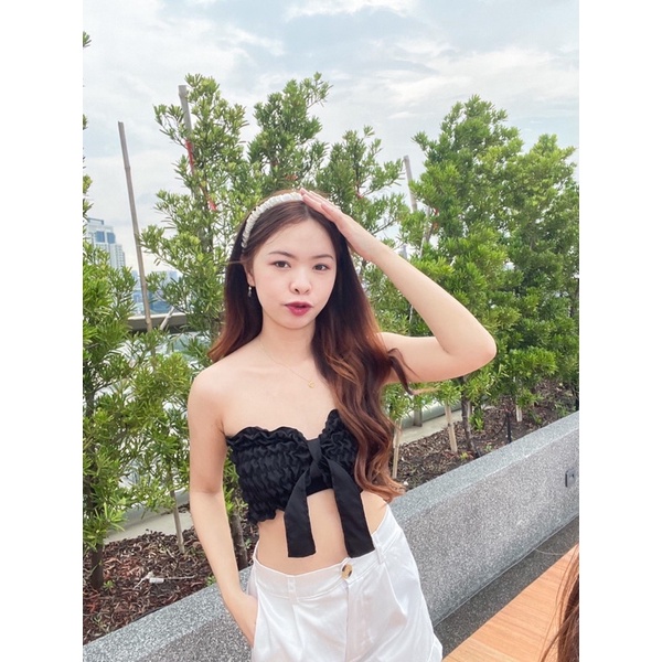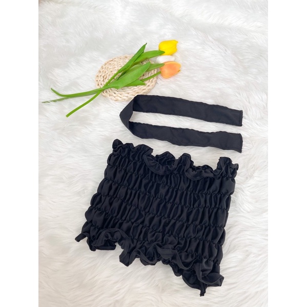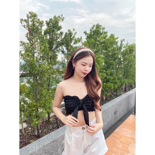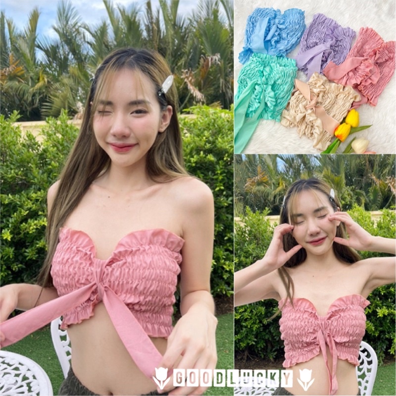 🌷GoodLucky🌷 (63) เสื้อสายฝอ เกาะอกสม๊อคแถมโบว์ผูก เกาะอกสม็อค ใส่ได้2แบบเลยจ้า