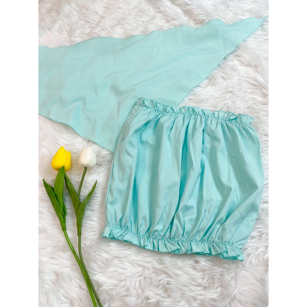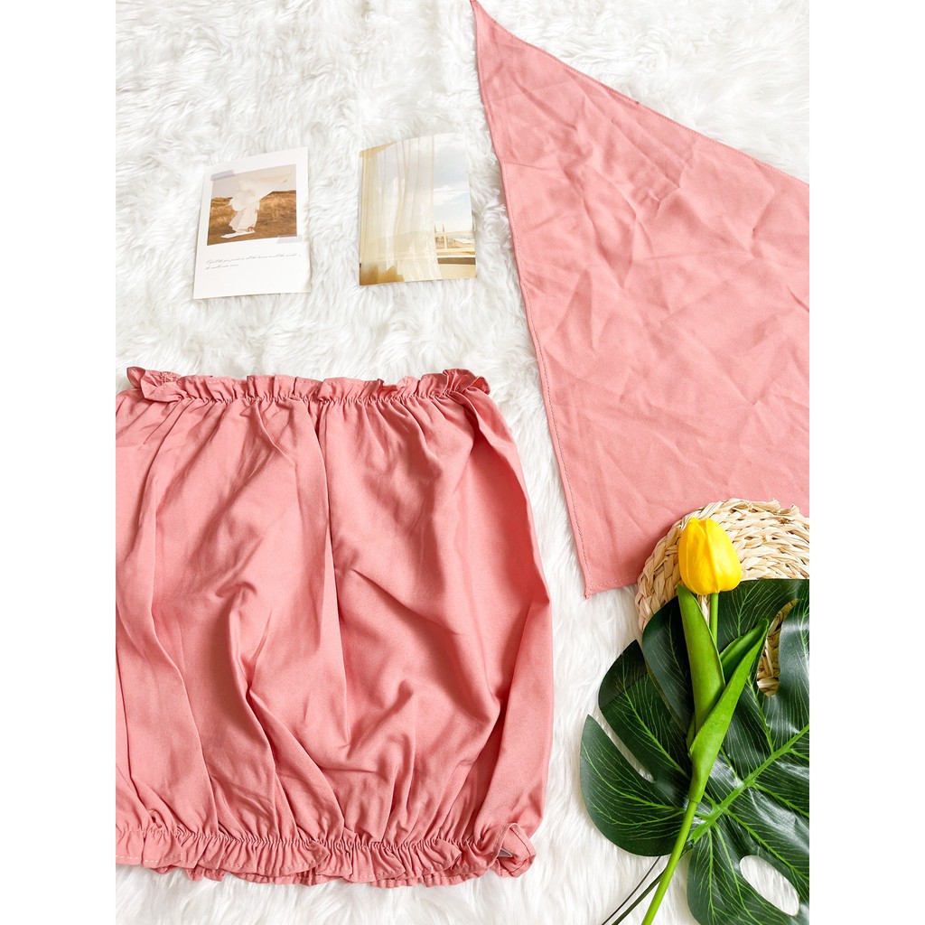 🌷GoodLucky🌷(59) เสื้อไปทะเล ชุดเซต เซต2ชิ้น เกาะอก+ผ้าโพก เสื้อครอป เสื้อไปทะเล ชุดเที่ยวคาเฟ่