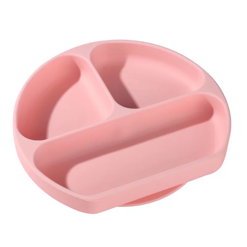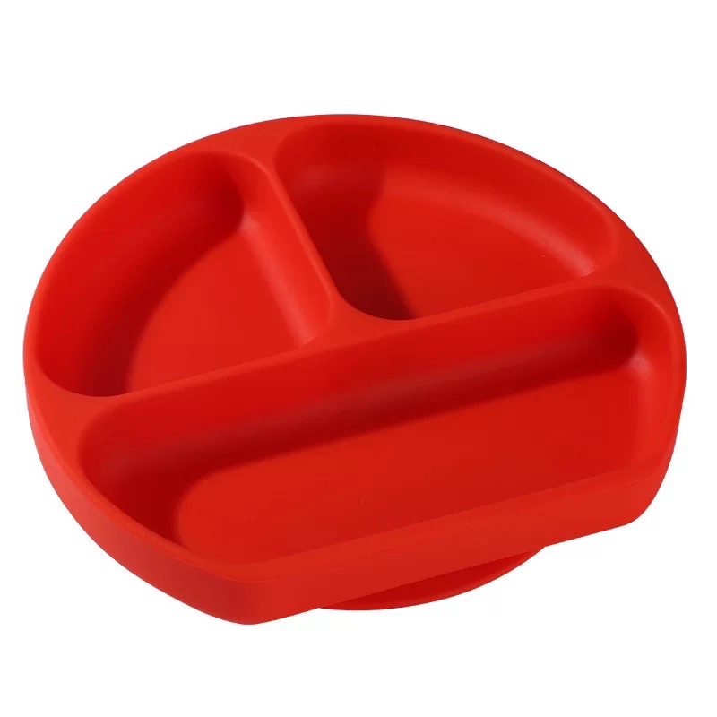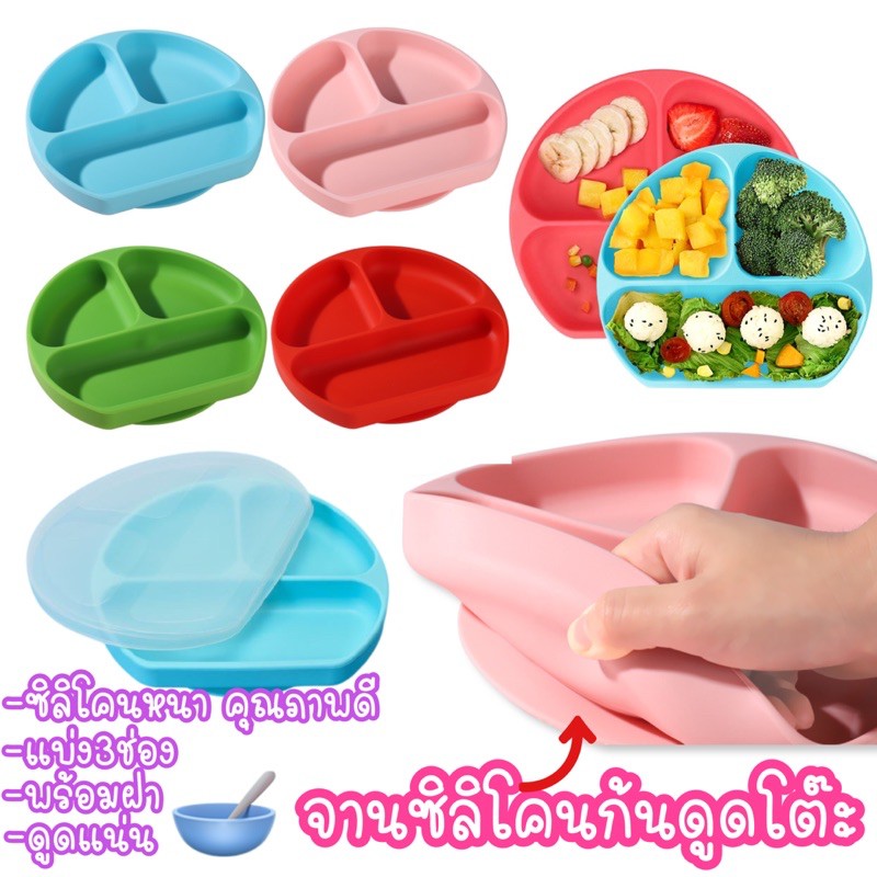 จานซิลิโคนก้นดูดโต๊ะ 3ช่อง พร้อมฝา เข้าไมโครเวฟได้ แช่เย็นได้ ซิลิโคนหนา คุณภาพดี จานเด็ก จานข้าวเด็ก
