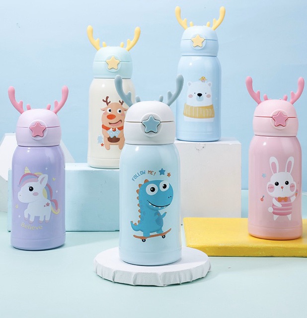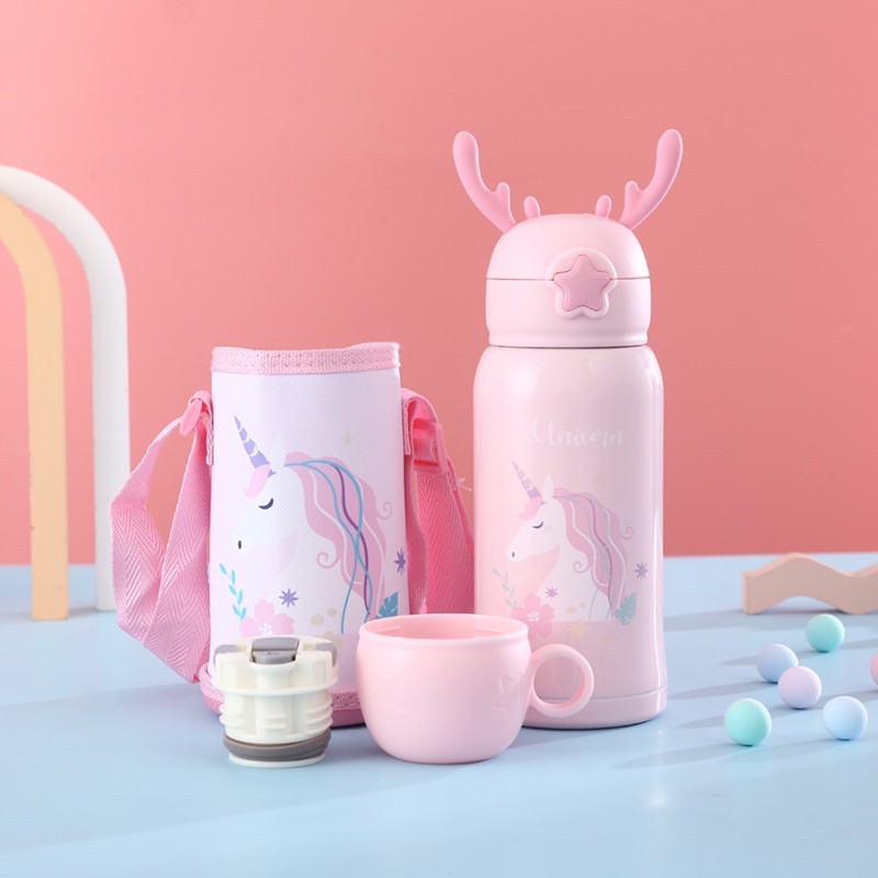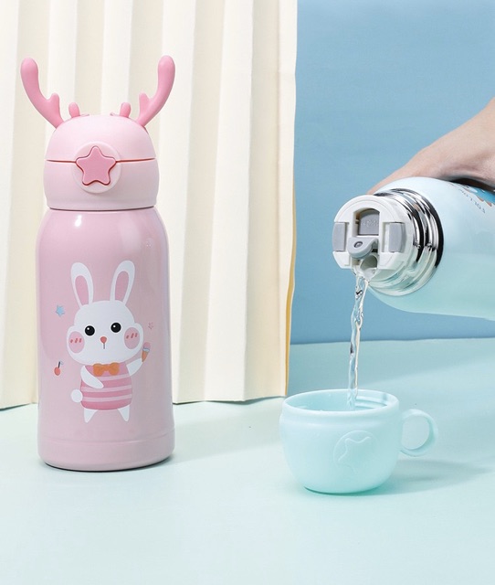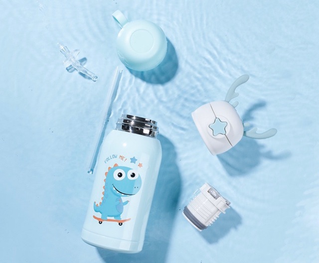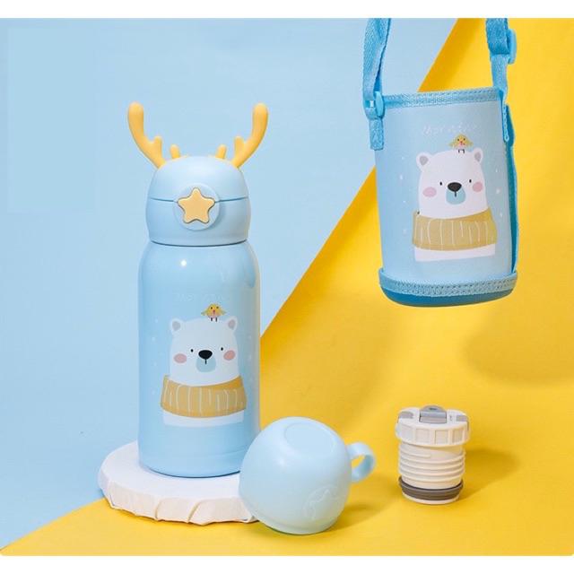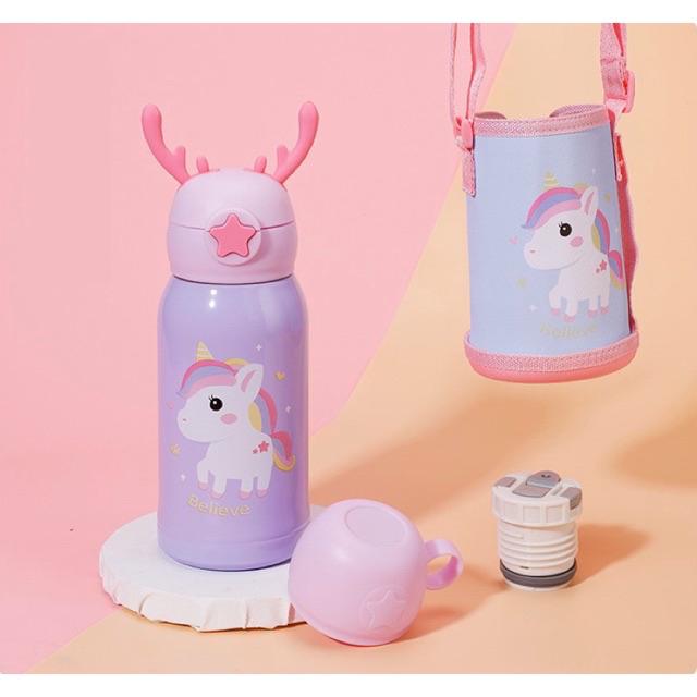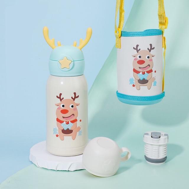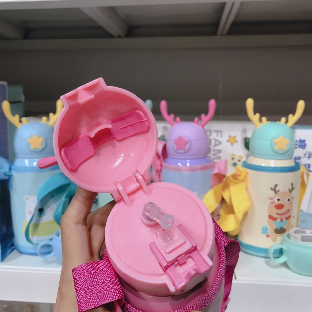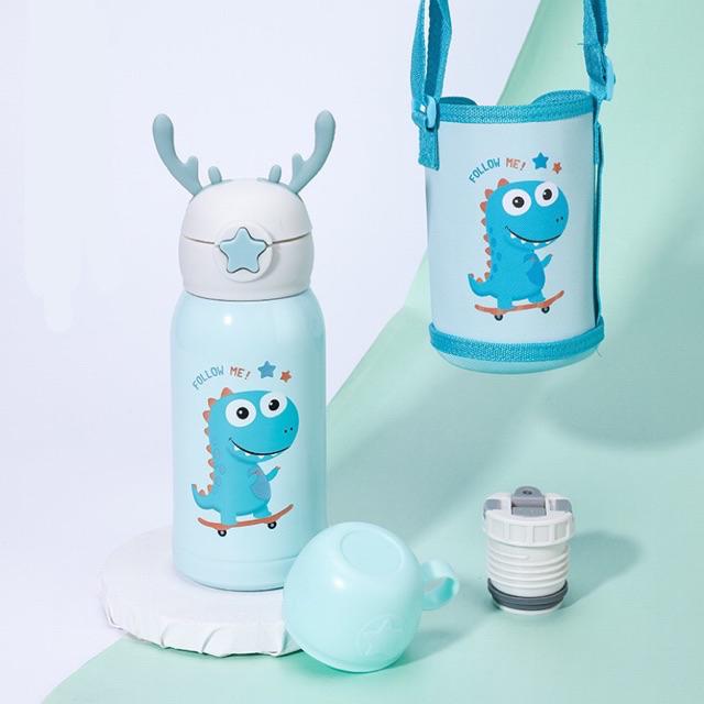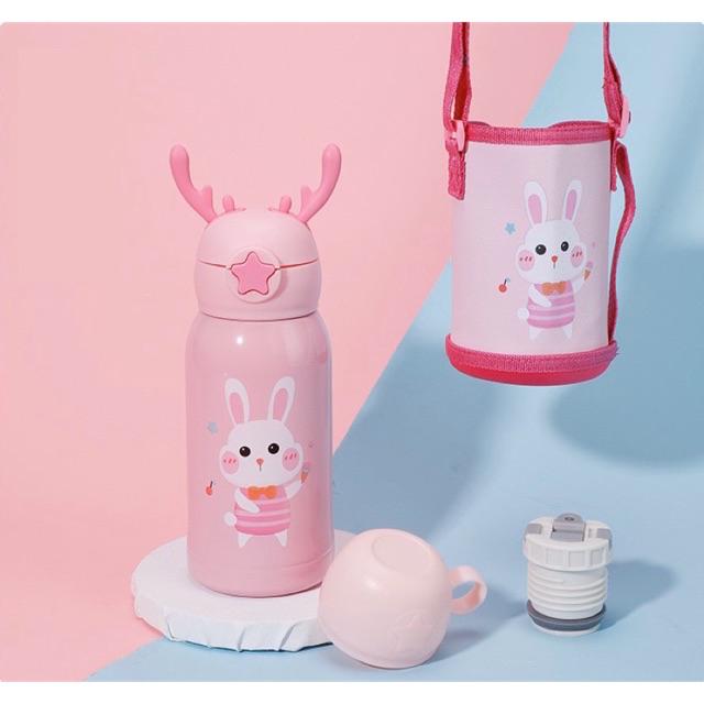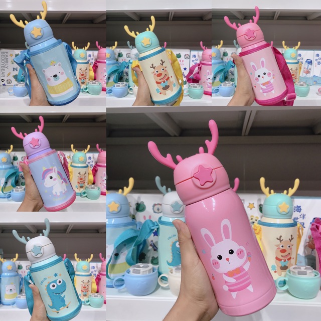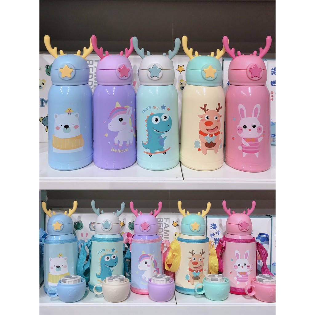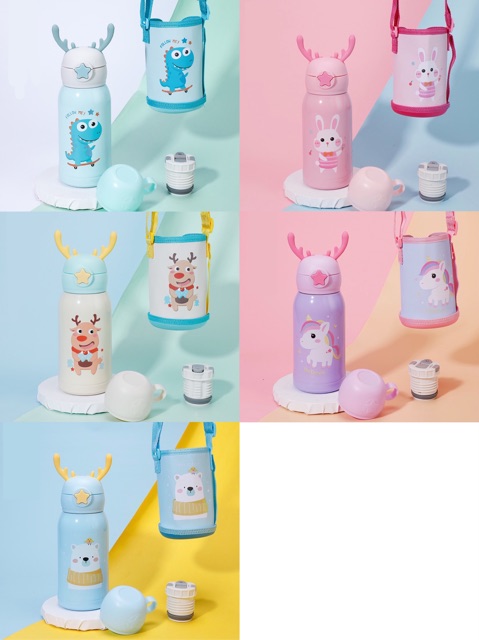 แก้วน้ำเด็ก กระติกน้ำ กระติกน้ำเด็ก กระติกน้ำเก็บอุณหภูมิ มีสายสะพาย กระติกน้ำลายการ์ตูนหลอดเด้ง500ml