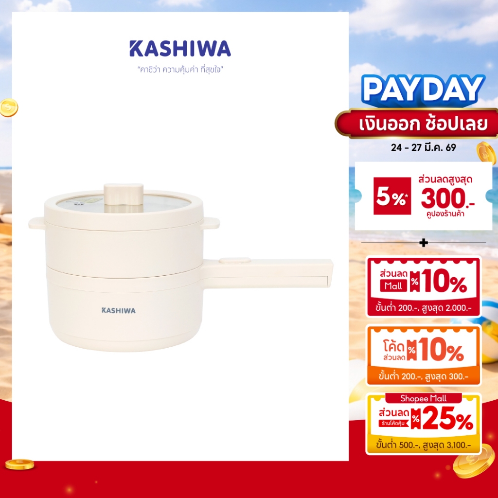 [โค้ดไลฟ์ลดสูงสุด50%] Kashiwa หม้อมินิไฟฟ้า หม้ออเนกประสงค์ พร้อมซึ้งนึ่ง หม้อต้ม รุ่น KW-108