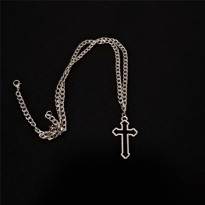 สร้อยคอโซ่จีไม้กางเขน ไม้กางเขน สร้อยเงิน สไตล์ฮิปฮอป พังก์ สร้อยคอ สร้อยแฟชั่น เครื่ องประดับผู้ชาย และผู้หญิง N36