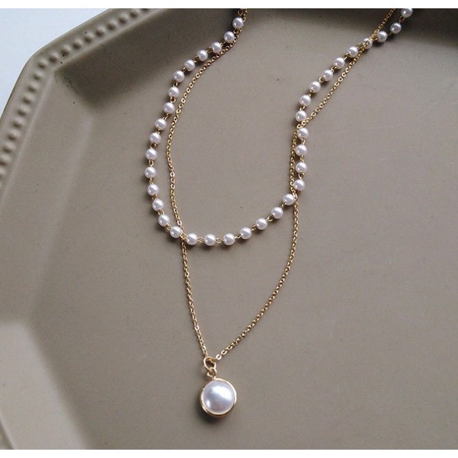สร้อยคอ 2 ชั้น สร้อยไข่มุก จี้ไข่มุก เครื่องประดับแฟชั่น ผู้หญิงเกาหลี N51