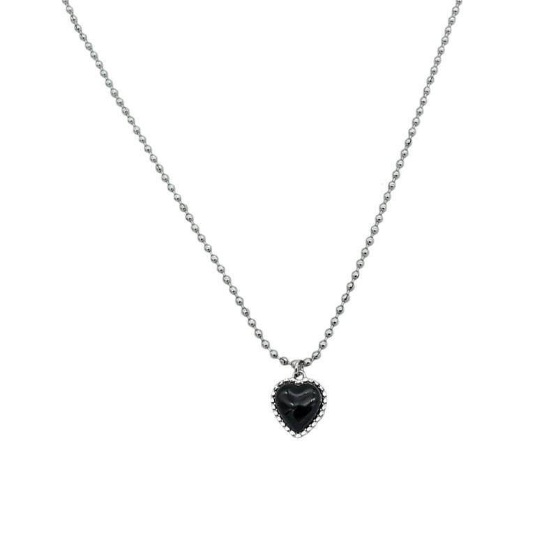 สร้อยคอจี้รูปหัวใจ จี้อัญมณีสีดำ สร้อย สร้อยเงิน สร้อยแฟชั่น เครื่องประดับของผู้หญิง สไตล์ญี่ปุ่นเกาหลี N22