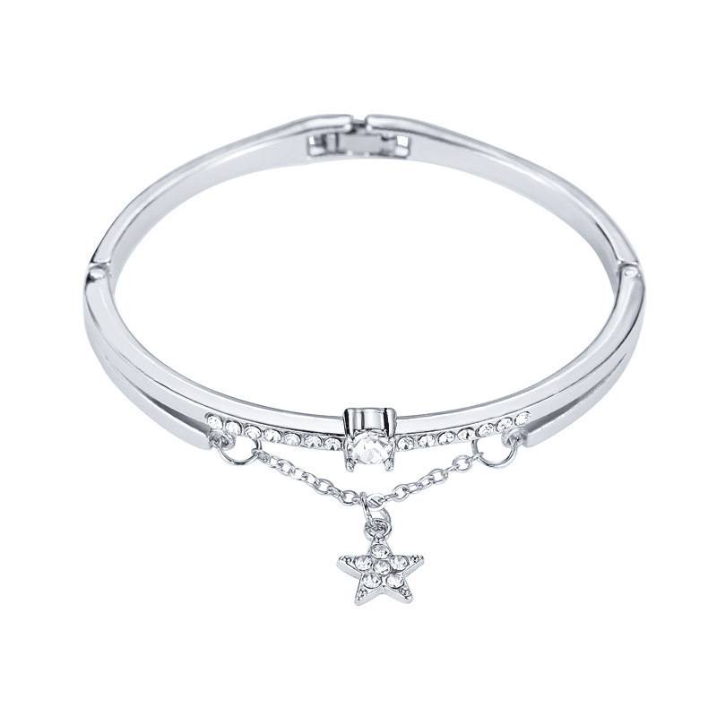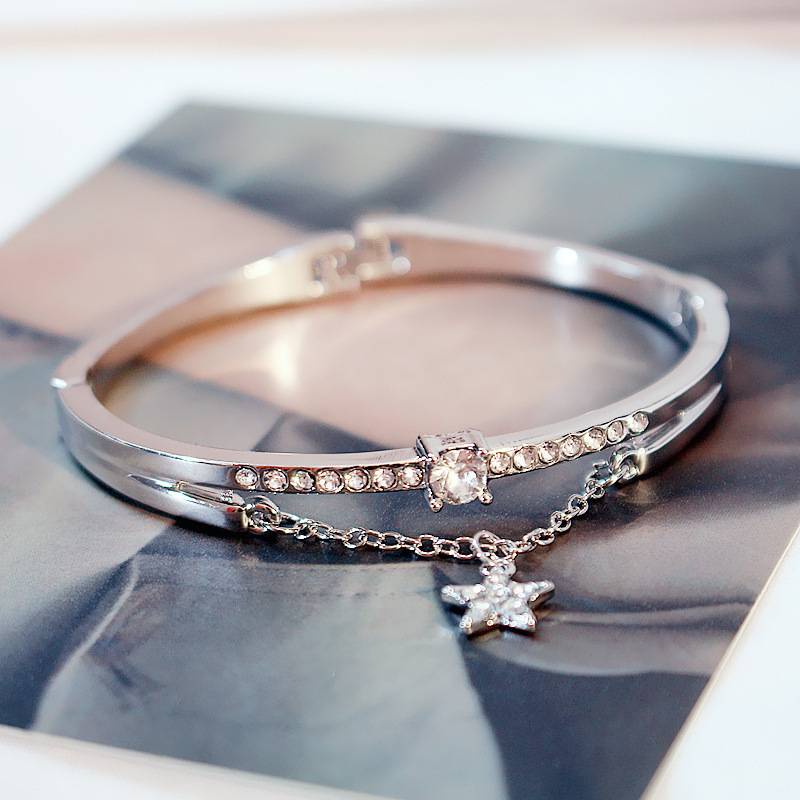 สร้อยข้อมือชุบเงิน ประดับเพชรรูปดาว กำไลข้อมือ เครื่องประดับ แฟชั่น สำหรับผู้หญิง สไตล์เกาหลี B2