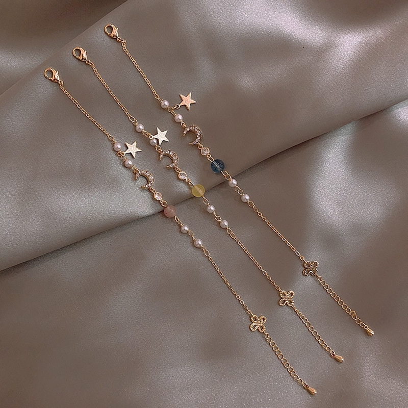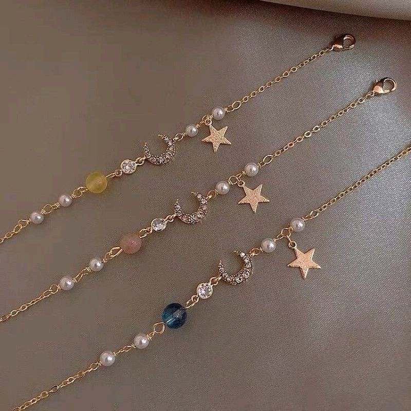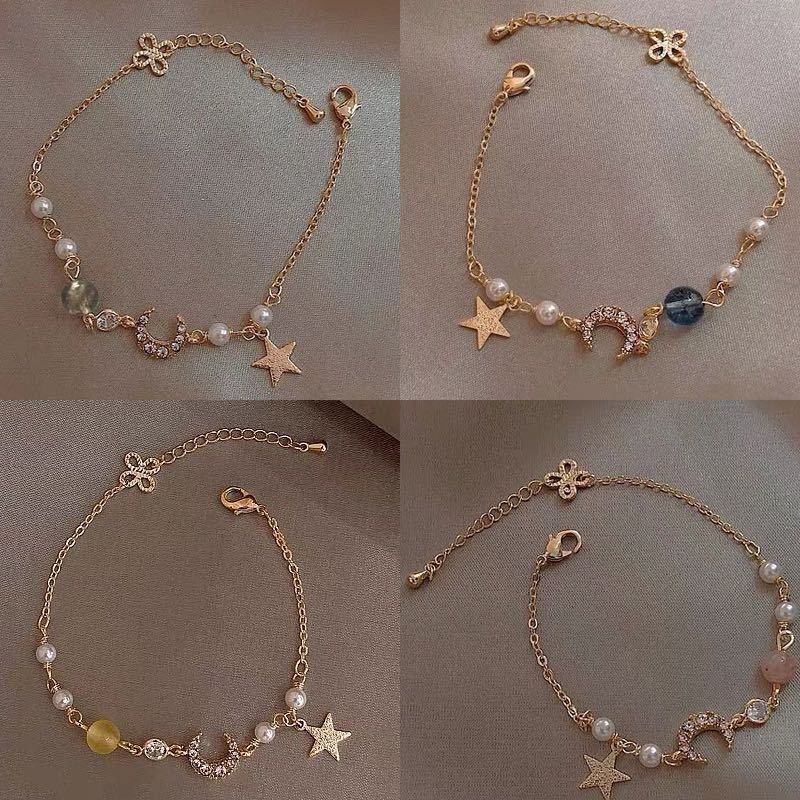 สร้อยข้ อมือ กำไล กำไลข้อมือ จี้ดาวและดวงจันทร์ประดับเพชรเครื่องประดับ แฟชั่น เครื่องประดับแฟชั่น ผู้หญิง สไตล์เกาหลี B6