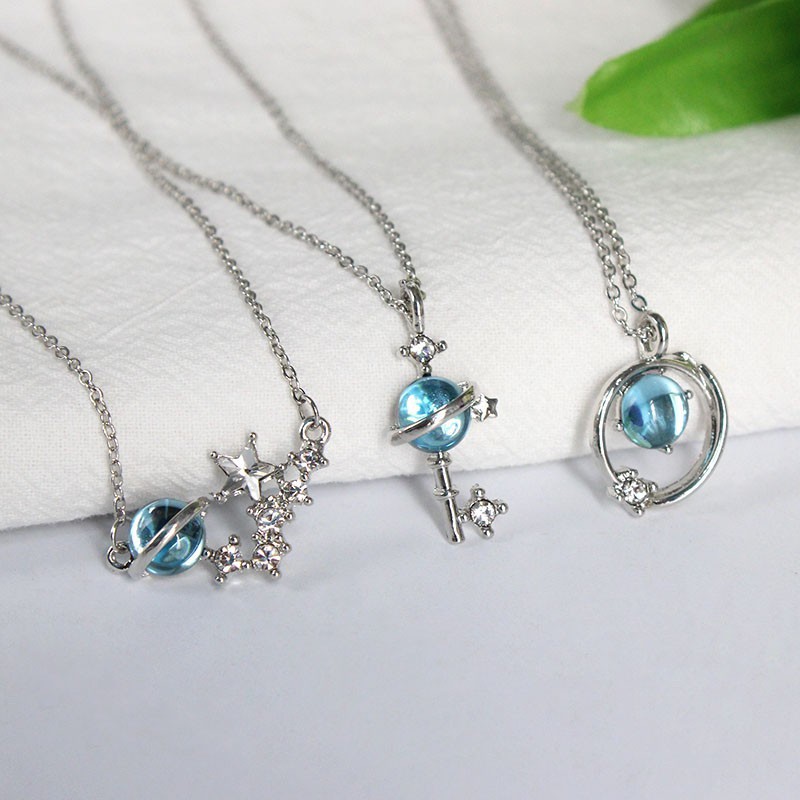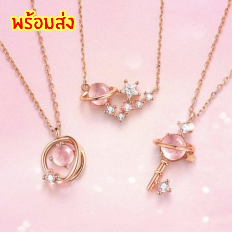 สร้อย สร้อยคอ สร้อยคอเงิน พร้อมจี้รูปดาวเคราะห์ประดับเพชร มีให้เลือก 3 แบบ 2 สี เครื่องประดับผู้หญิง สไตล์เกาหลี N21