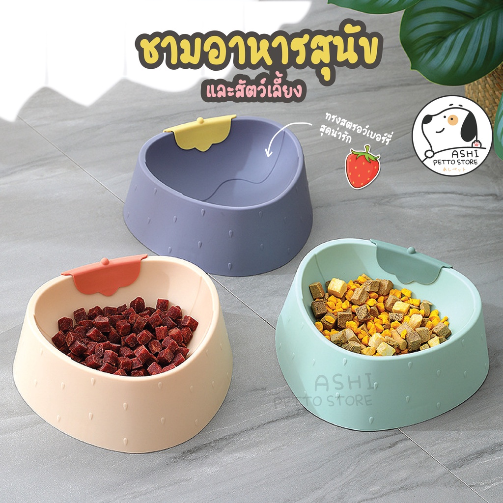 ชามอาหารสัตว์เลี้ยง ชามข้าวแมว สุนัข ลายสตรอเบอรี่สุดคิวท์ สุดมินิมอล