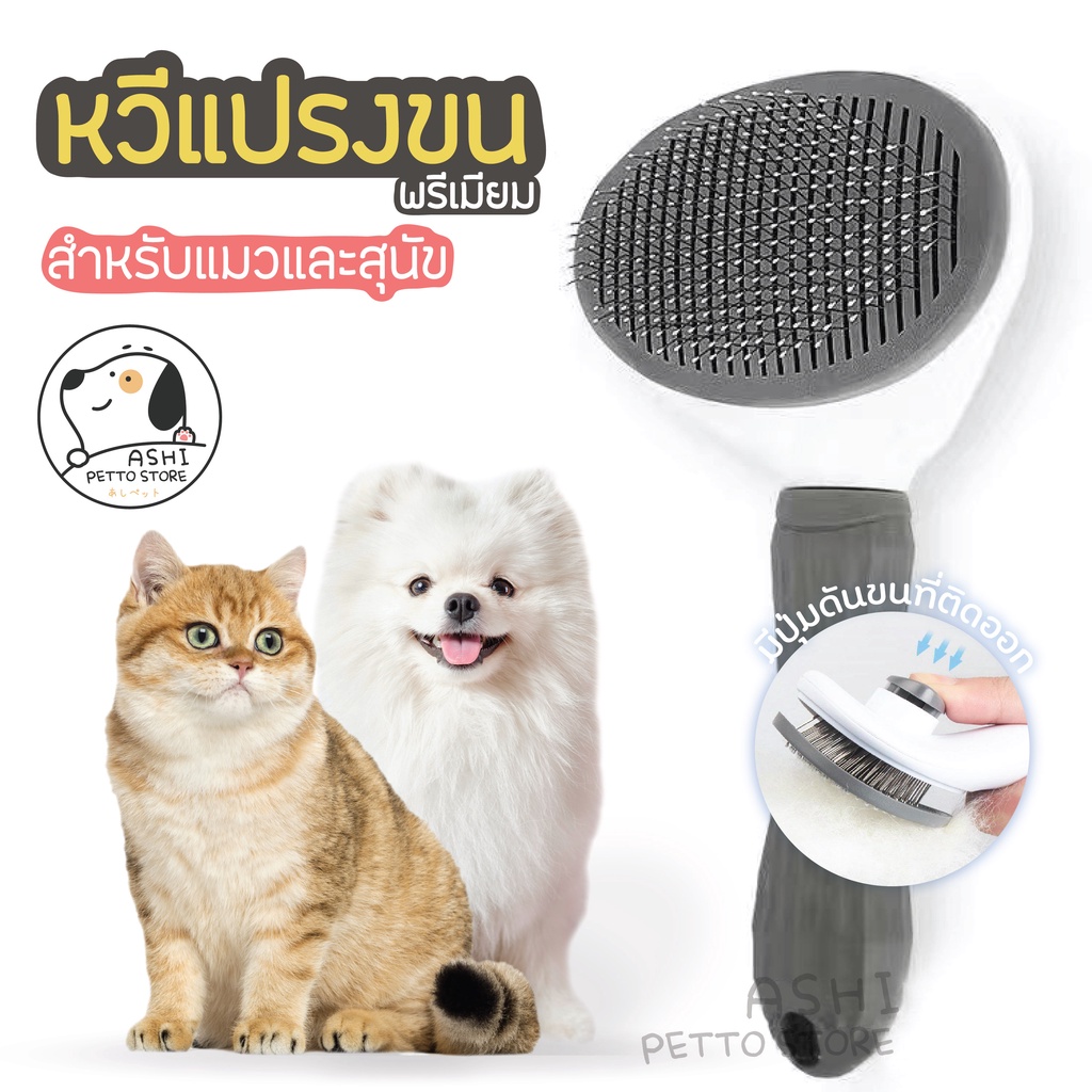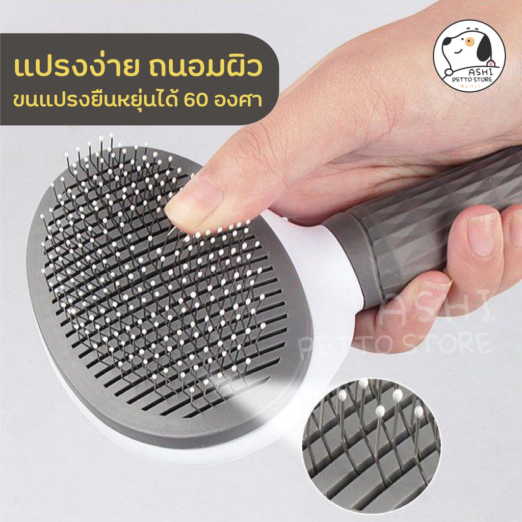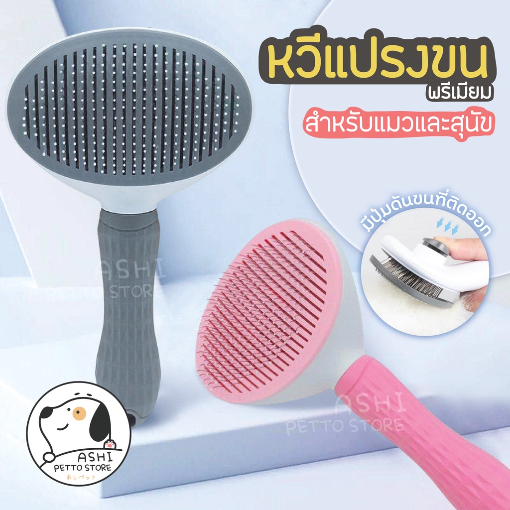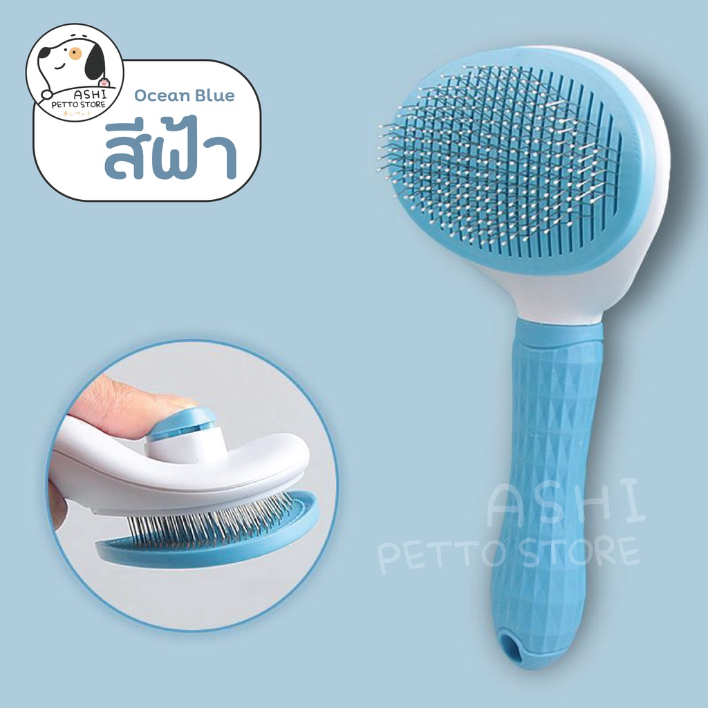 หวีแปรงขนสัตว์เลี้ยง แปรงหวีขนแมว สุนัข กระต่าย แบบมีปุ่มดันขนออก