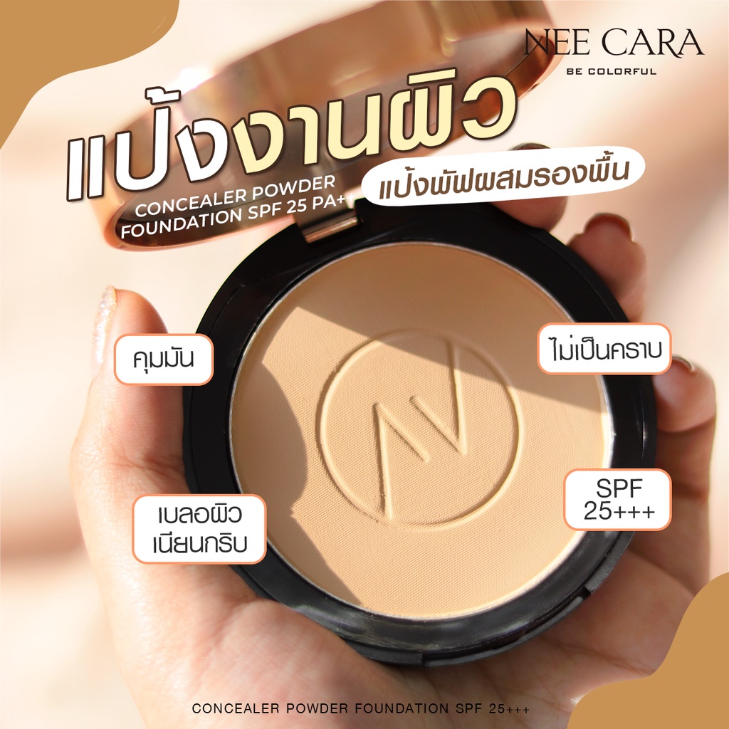 นีคาร่า N604 แป้งพัฟ แป้งผสมรองพื้น แป้งตลับ ของแท้100% NEE CARA POWDER CAKE SPF25+++