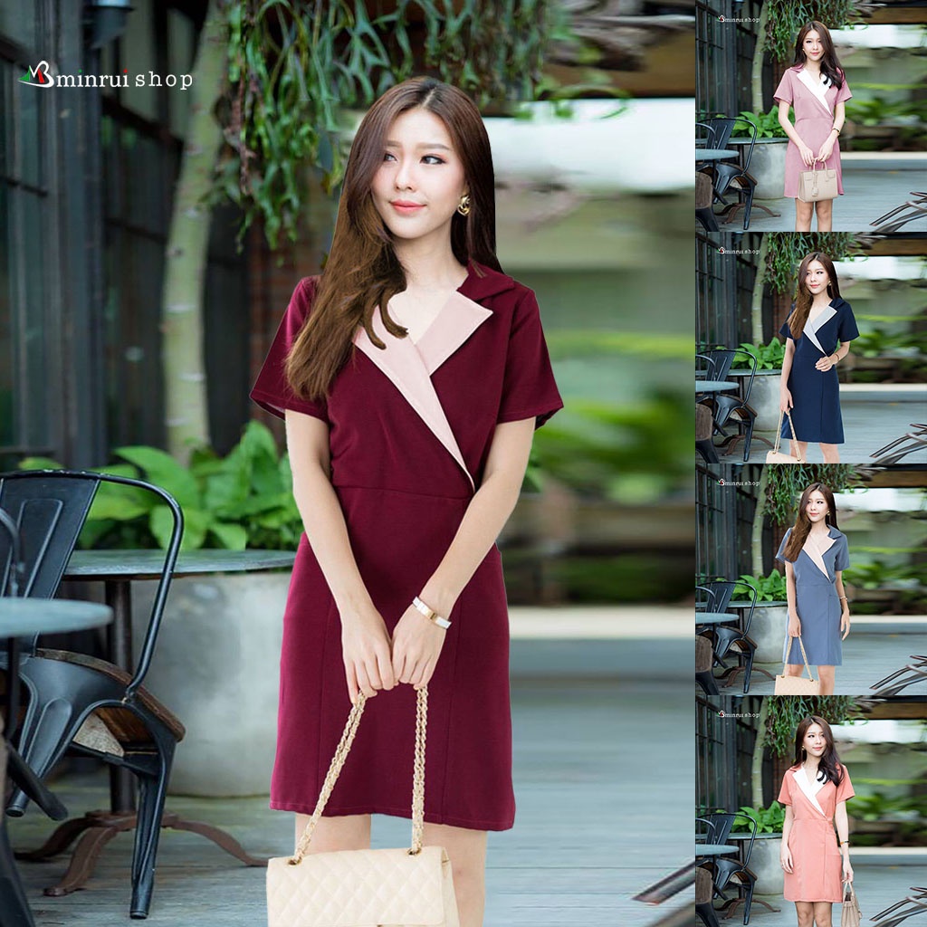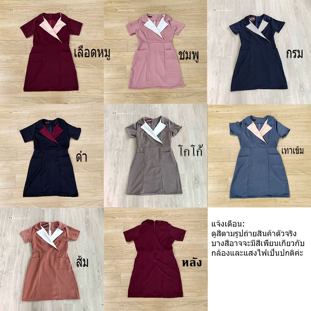 เดรสผ้าฮานาโกะคอปกกระเป๋าสองข้าง อก36นิ้ว ความยาว33นิ้ว เอว30นิ้ว สะโพก38นิ้วS212