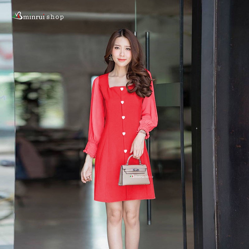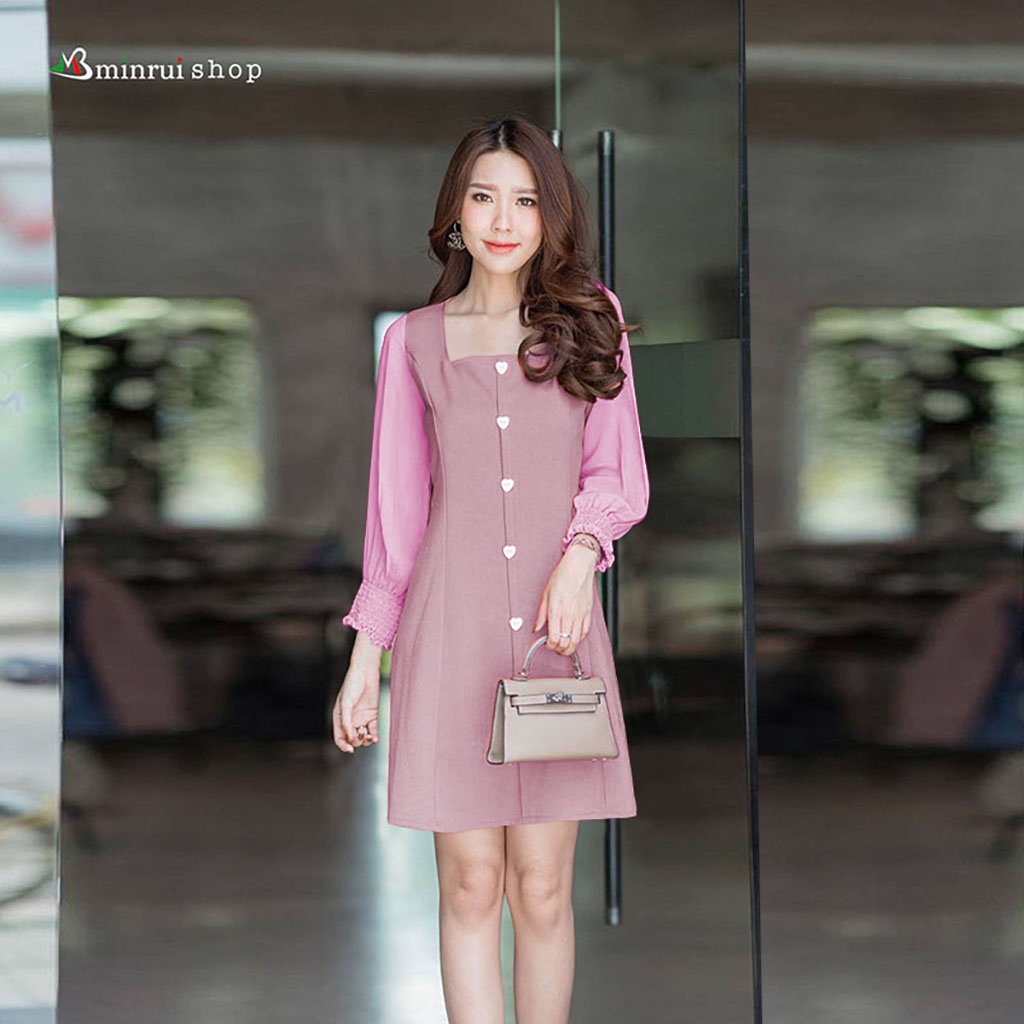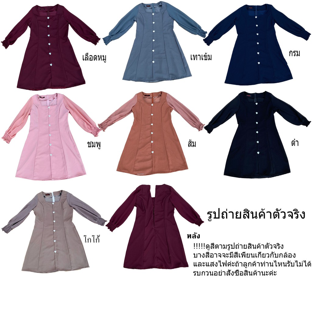 เดรสผ้าฮานาโกะแต่งแขนชีฟองแขนยาวปลายแขนจั้มสม้อค อก36นิ้ว เอว32นิ้ว สะโพก40นิ้วS273