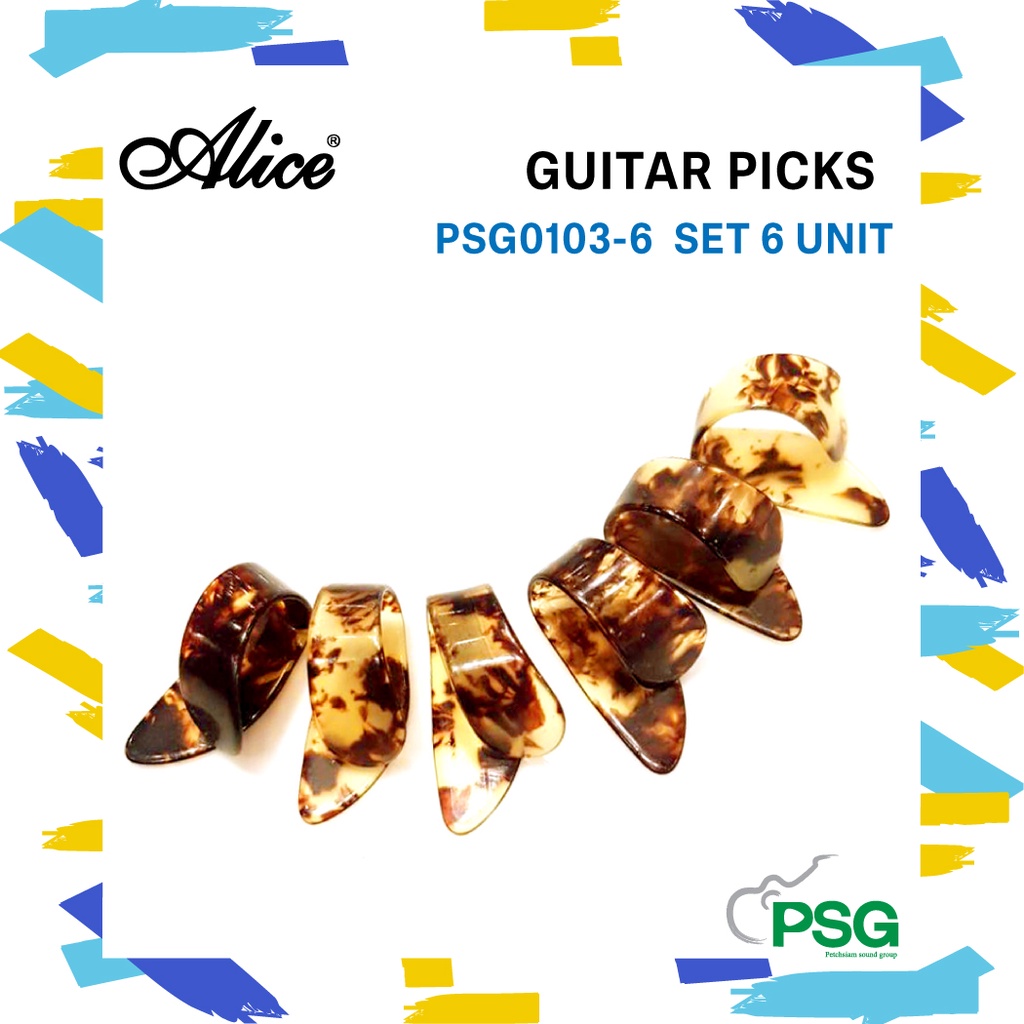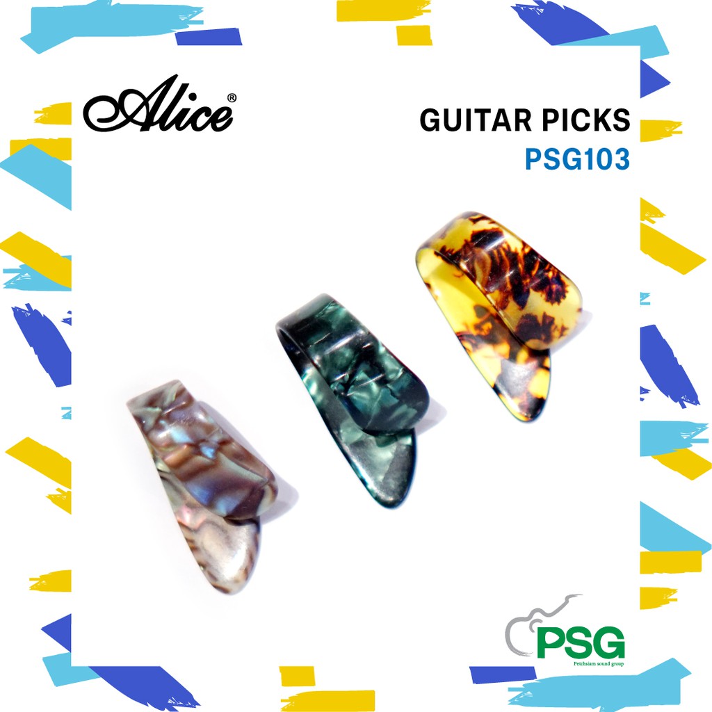 ALICE : PSG103-4 FINGER PICK GUITAR PICKS ปิ๊กนิ้วโป้ง ลายกระ (หลากสี) คละสี 3-4 ตัว