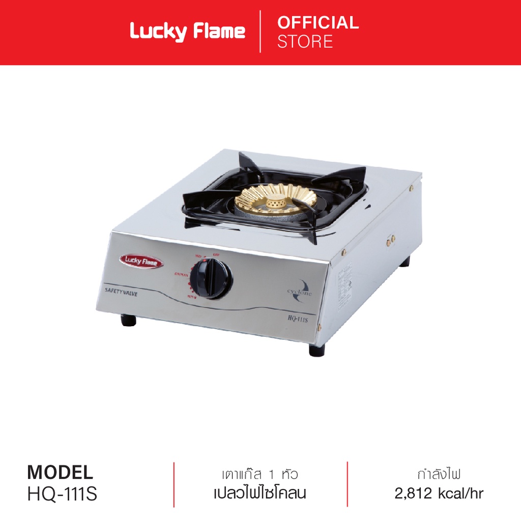 Lucky Flame เตาแก๊สตั้งโต๊ะ 1 หัว รุ่น HQ-111S โครงสร้างสเตนเลสทั้งตัว เปลวไฟ Cyclone