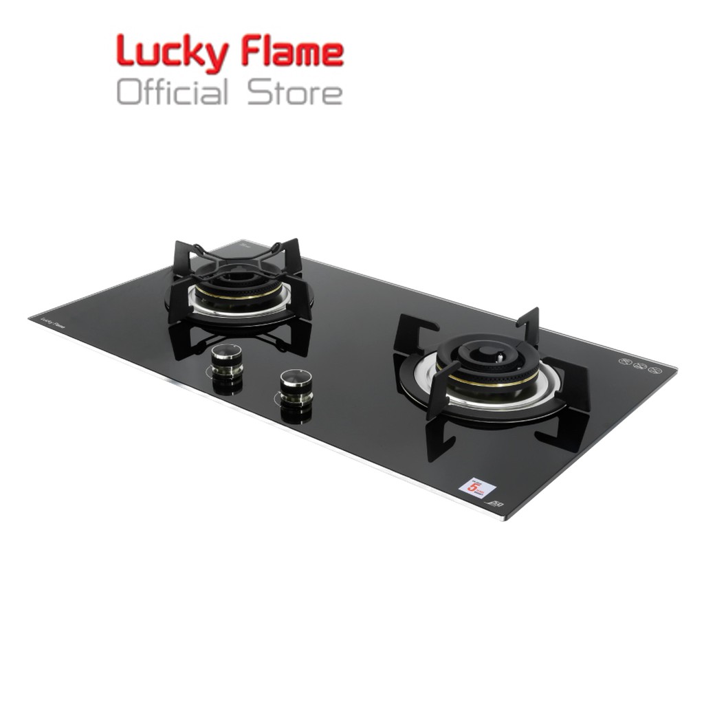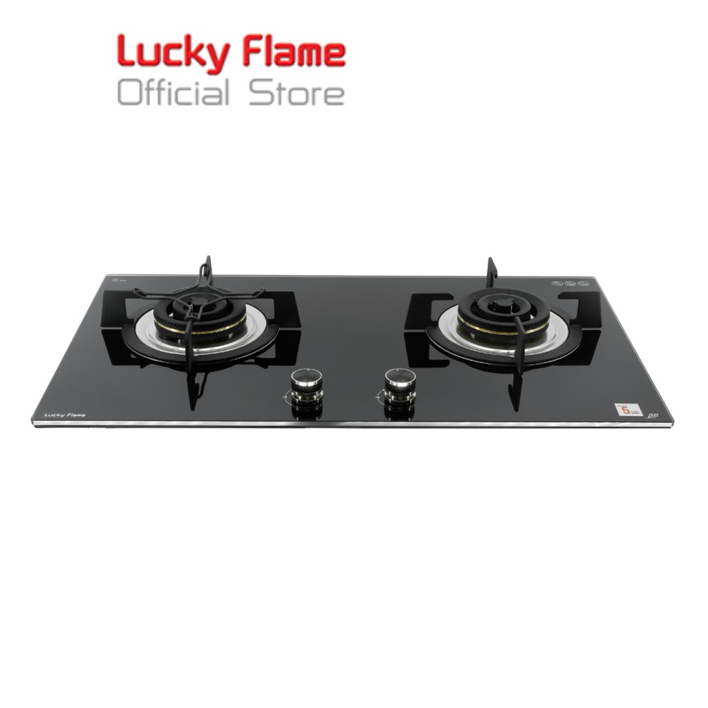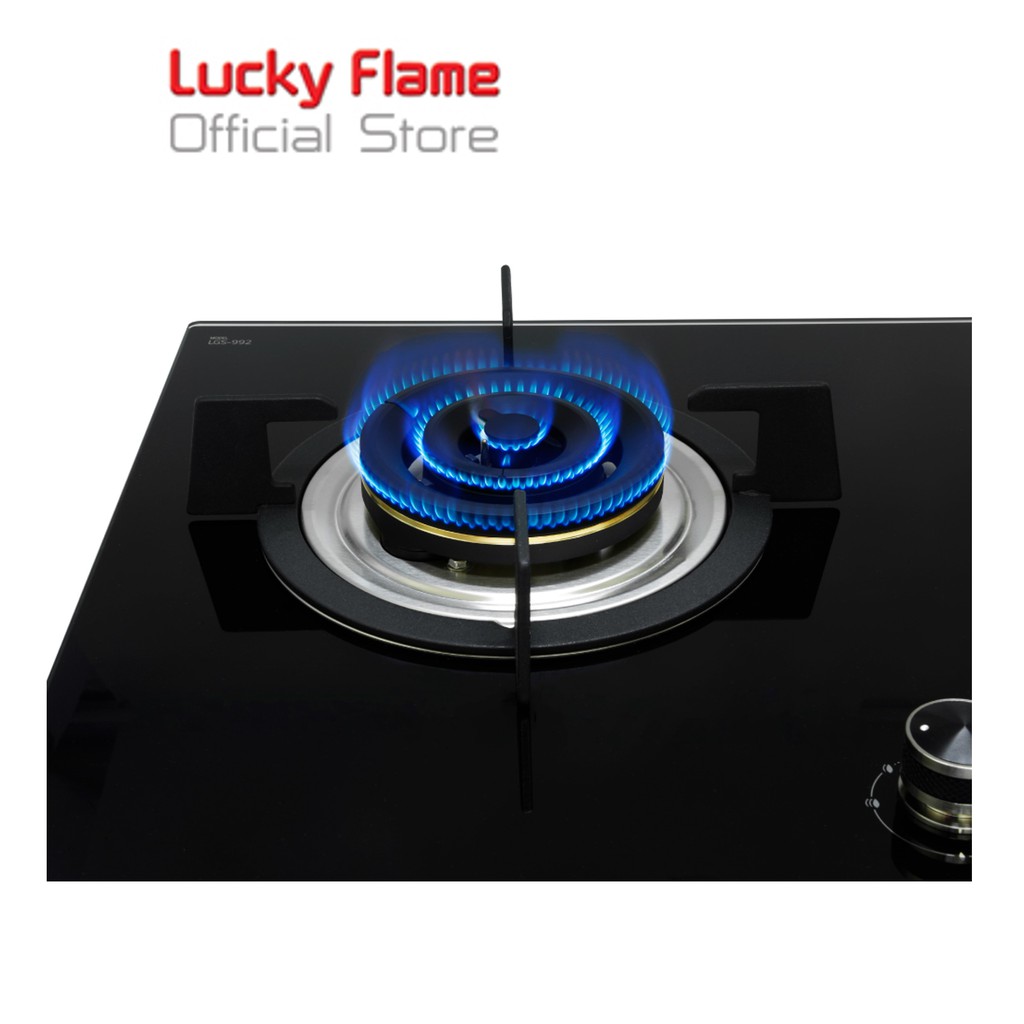 Lucky Flame เตาแก๊สแบบฝัง 2 หัว รุ่น LGS-992 หน้ากระจกนิรภัย ปรับเปลวไฟได้ 7 ระดับ