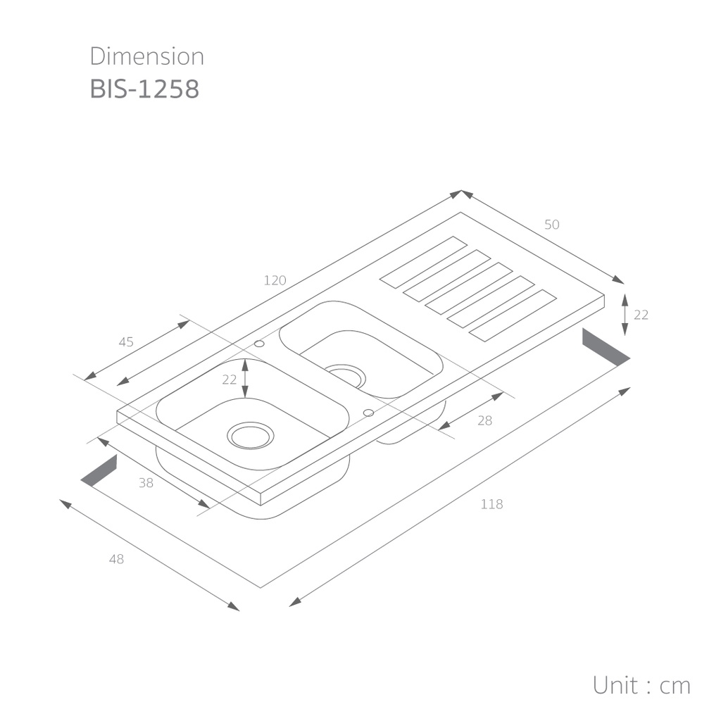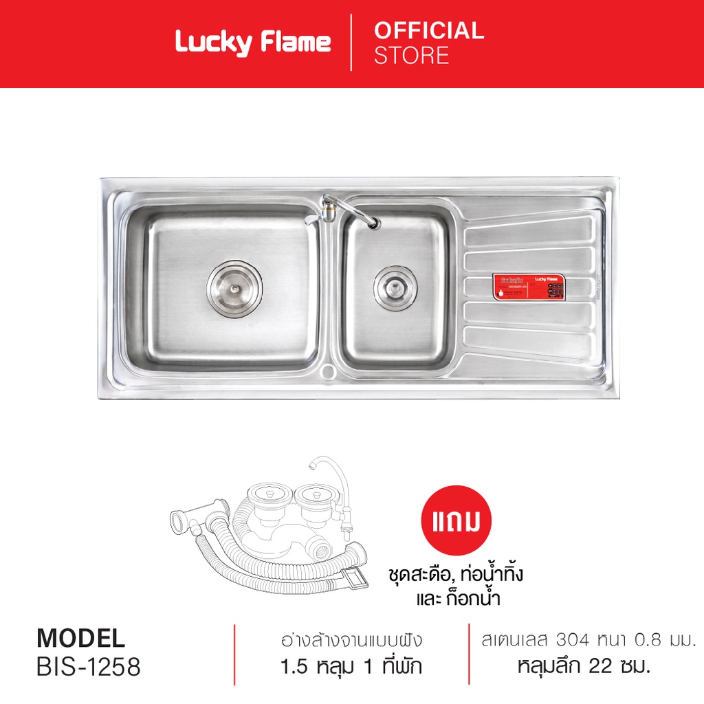 Lucky Flame ซิงค์ล้างจานสเตนเลส 2 หลุม รุ่น BIS-1258 ซิงค์สเตนเลส แบบมีที่พัก