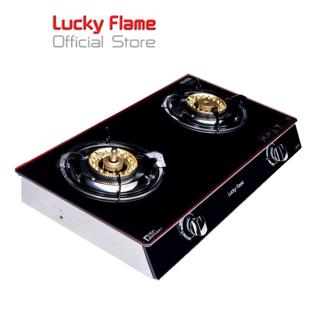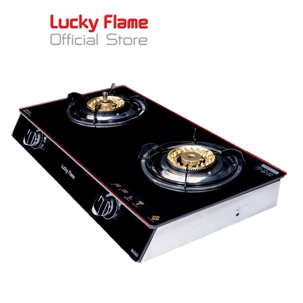 Lucky Flame เตาแก๊สตั้งโต๊ะ 2 หัว รุ่น AG-112SSC เตา แก๊สระบบนิรภัย 2 ชั้น หน้าเตากระจกนิรภัย