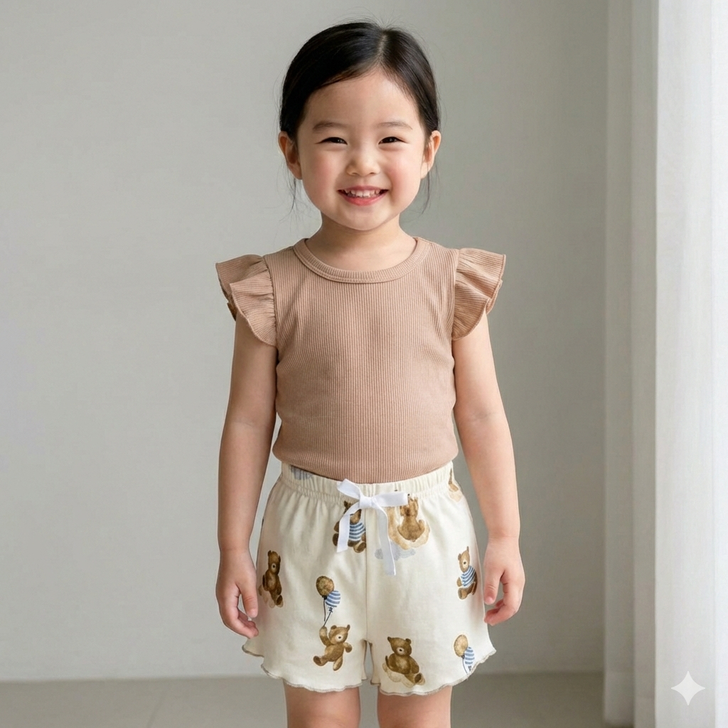 FUFU เสื้อเด็กผู้หญิง แขนระบาย Size S-XL อายุ 1-6 ปี สีพื้น ผ้าร่อง เสื้อยืดเด็ก (THH-1)