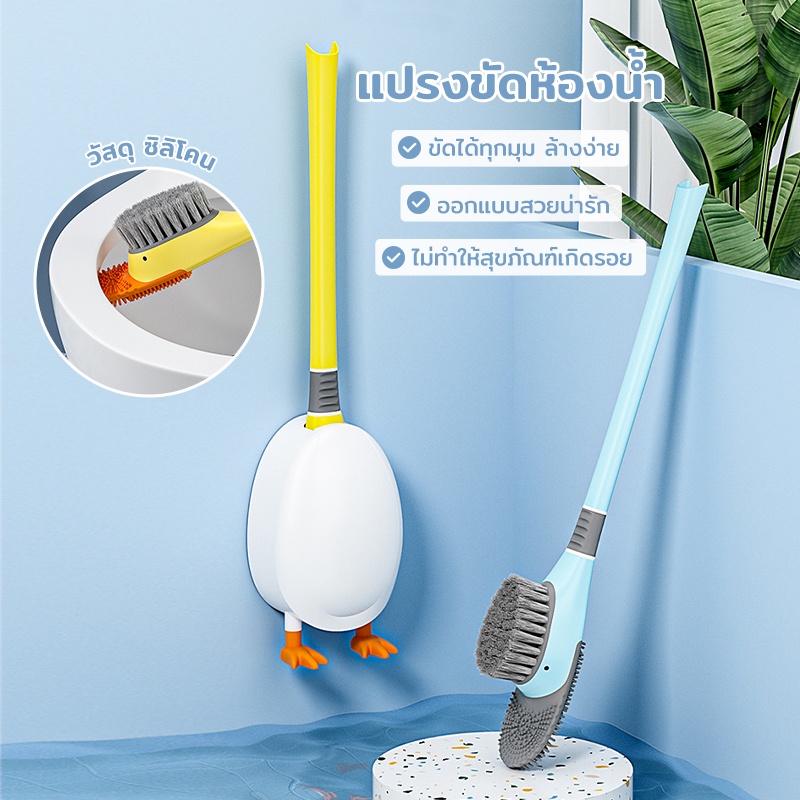 แปรงขัดส้วม แปรงล้างห้องน้ำ ไม้ขัดส้วม ไม้ขัดชักโครก แปรงขัดห้องน้ำซิลิโคน ที่ขัดห้องน้ำ พร้อมที่เก็บ ไม่เจาะผนัง