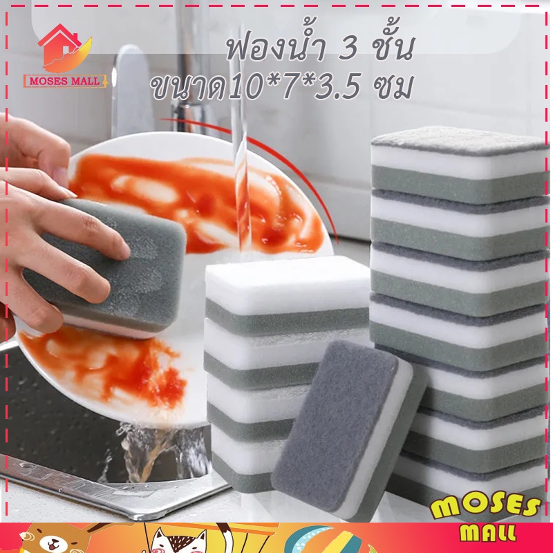 ฟองน้ำ 3 ชั้น ฟองน้ำล้างจาน สำหรับล้างจาน แก้ว ขัดหม้อ กระทะ ไม่ทำลายเคลือบผิว 1 ชิ้น 181F