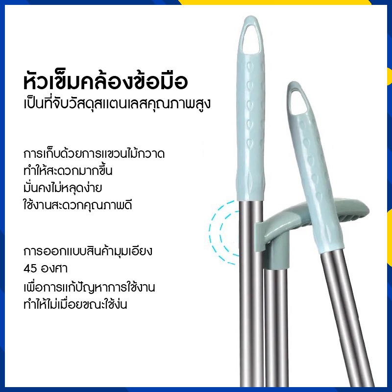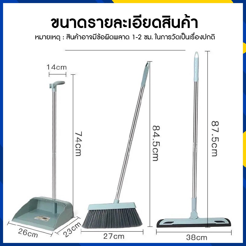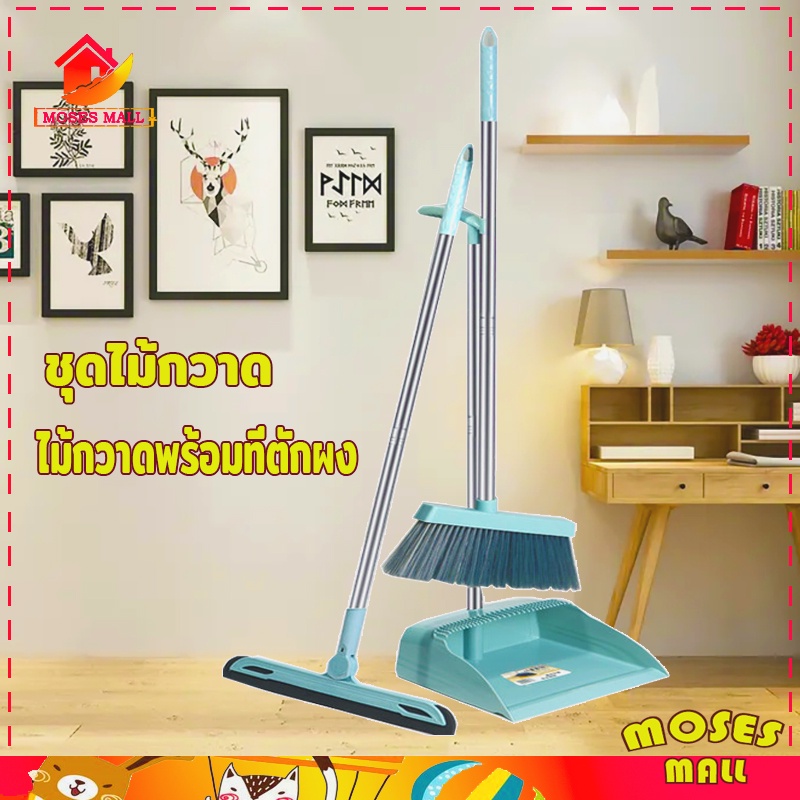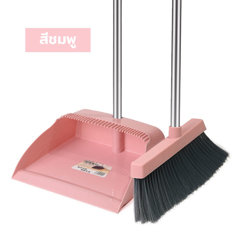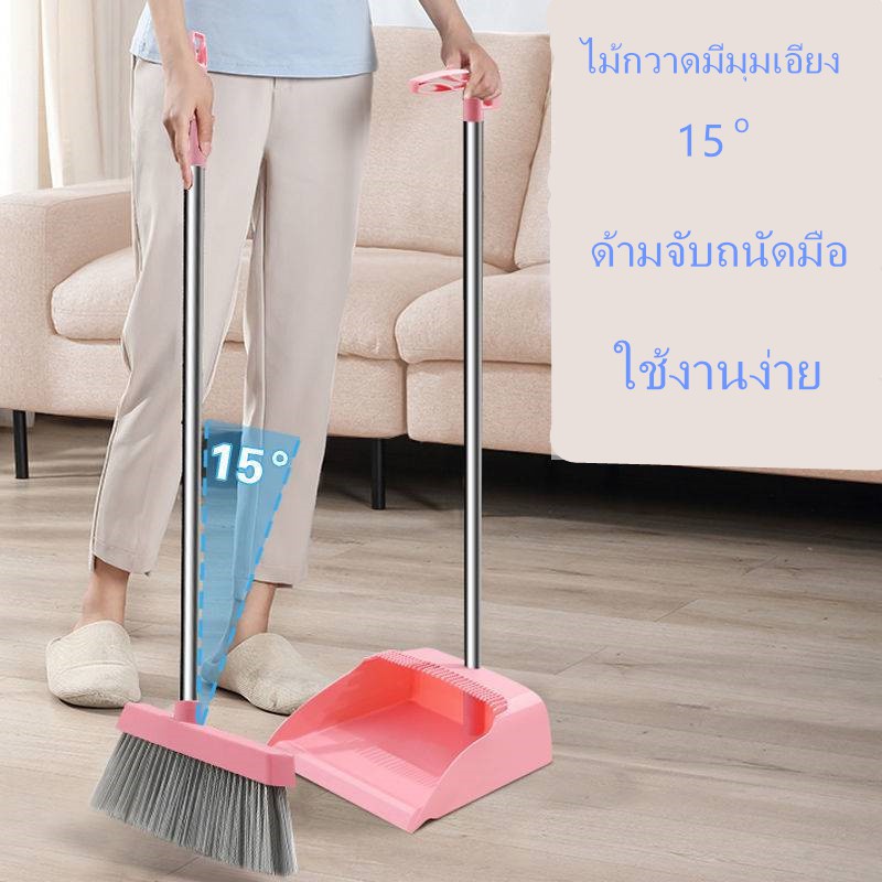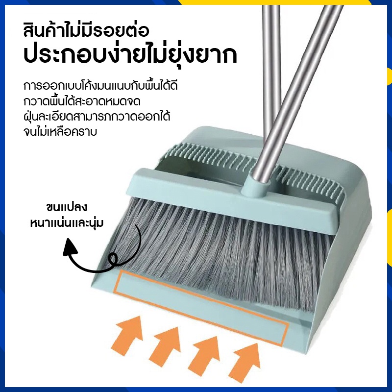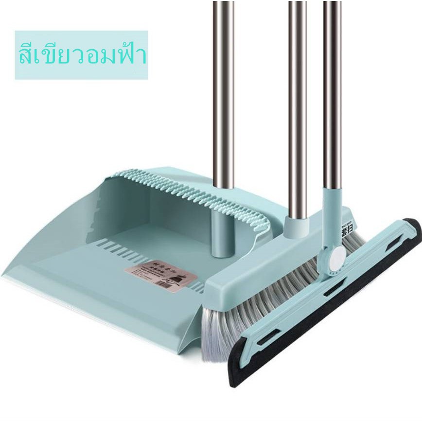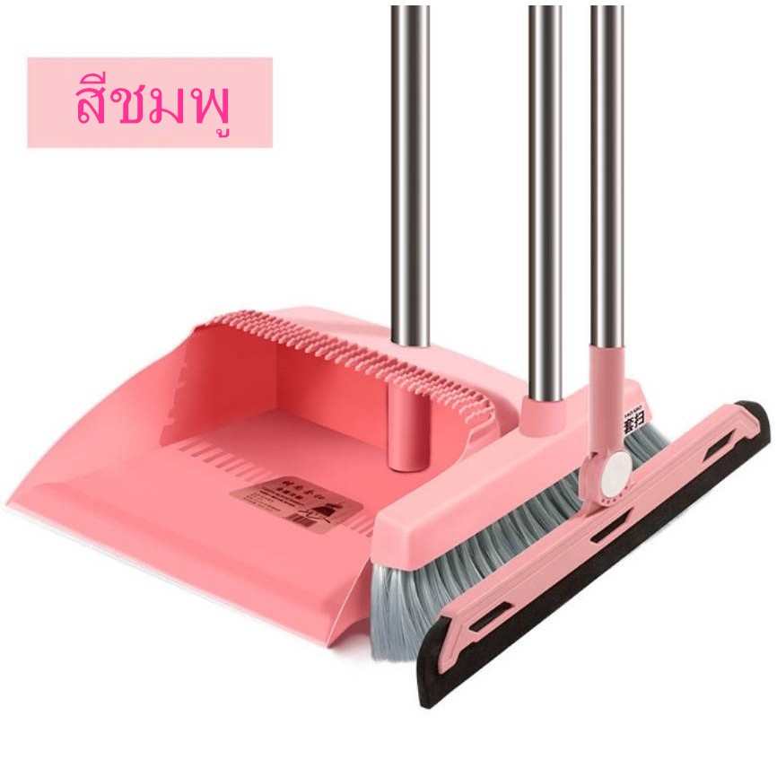 ไม้กวาด ชุดไม้กวาด มีแปรงในตัวพร้อมที่ตักขยะ ตั้งเก็บได้ ไม้กวาดหมุนได้